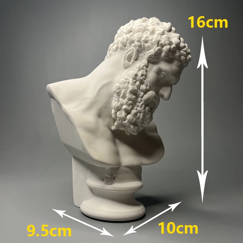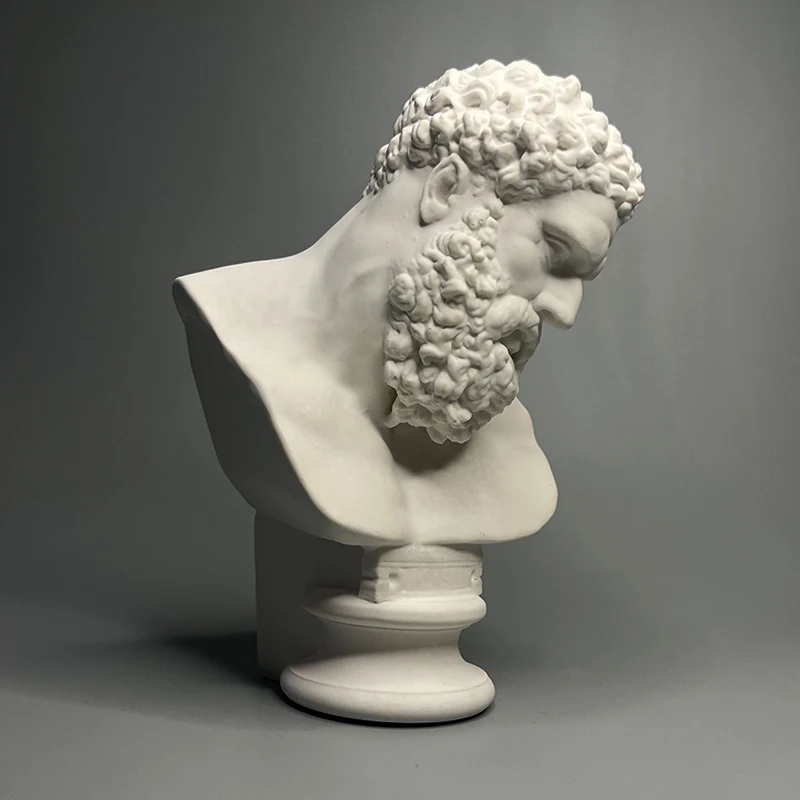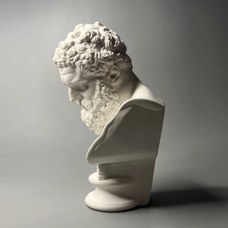 Herculean Legacy, Retro Roman Plaster Hercules Head Statue for Desktop Decoration