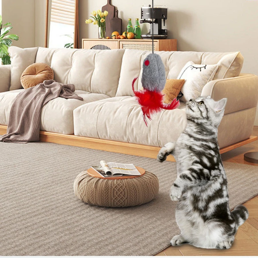 Interactive Cat Teaser, Hanging Blanket with Imitation Mouse for Hours of Fun