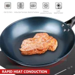 3.Suggestion: In order to prevent rusting, towel dry immediately after use and apply a light coat of oil to the cooking surface while pan is still warm. Do not let carbon steel pan air dry