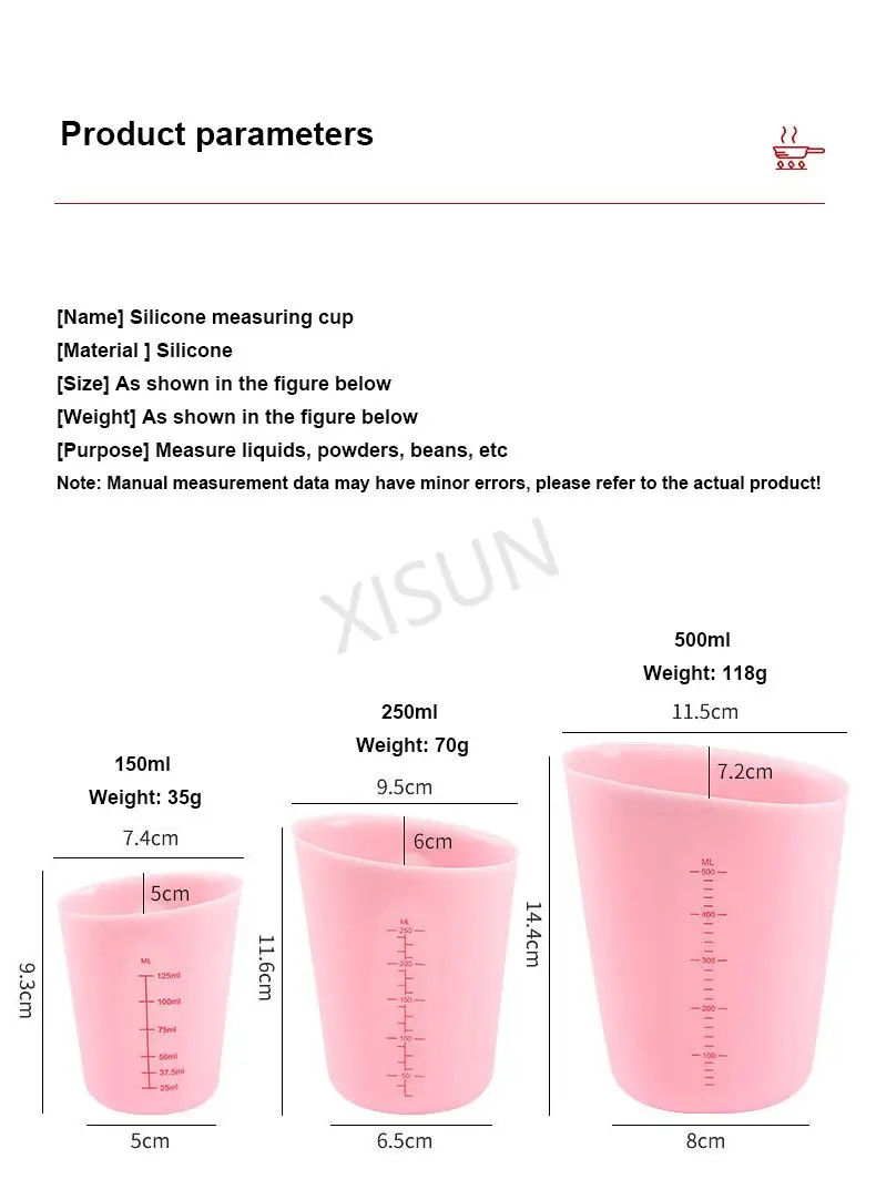 125ml 250ml 500ml Silicone-Baking Measure Cup Chocolate Butter Pour Spout Cups Mixing Jug Kitchen Baking-Tool Measuring Cup