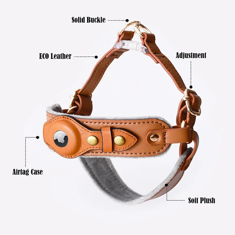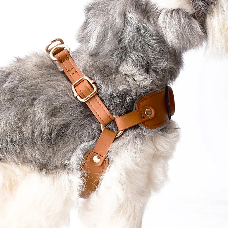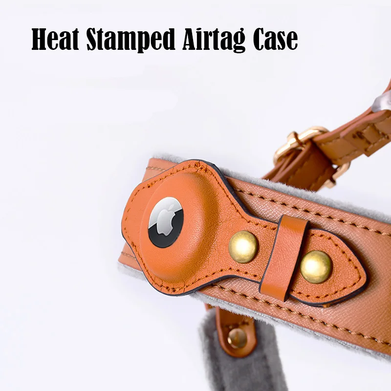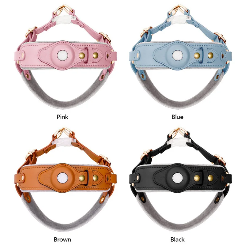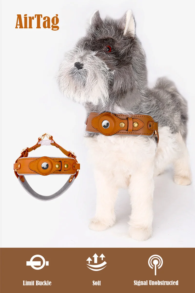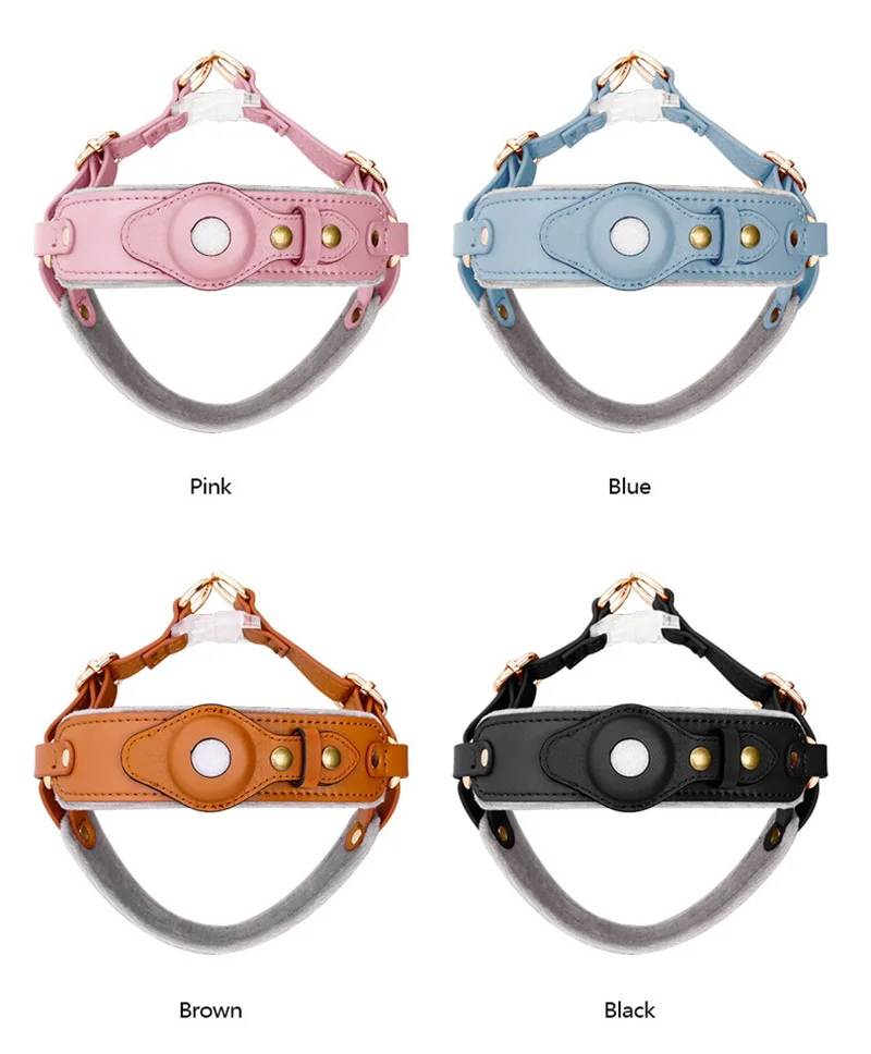 Leather Walk, Stylish Harness & Leash Set with AirTag Protection