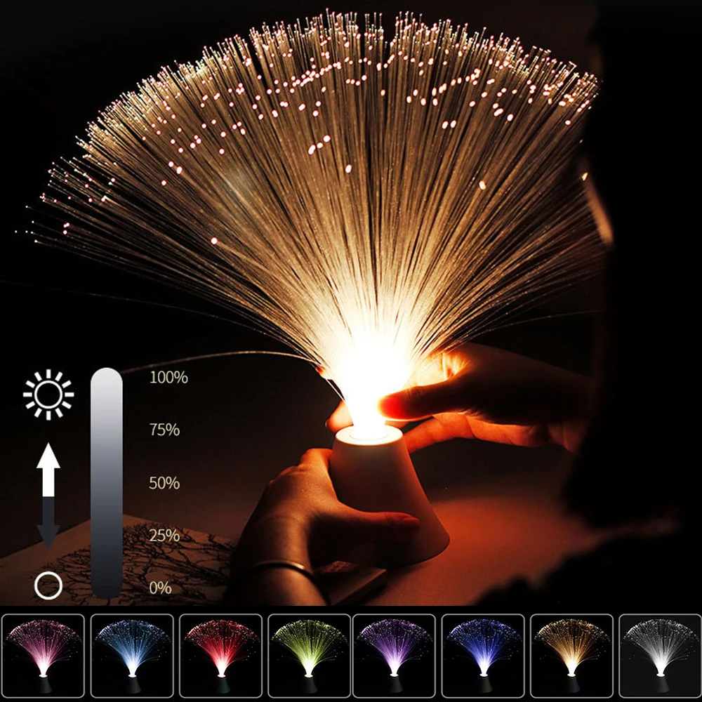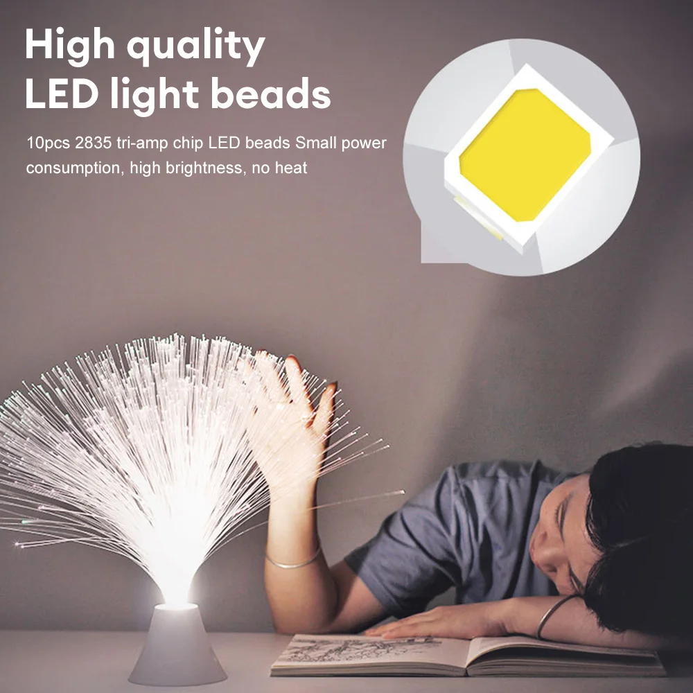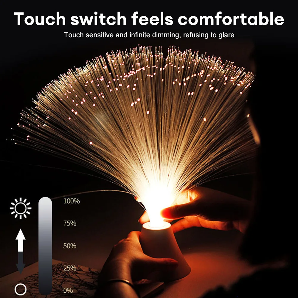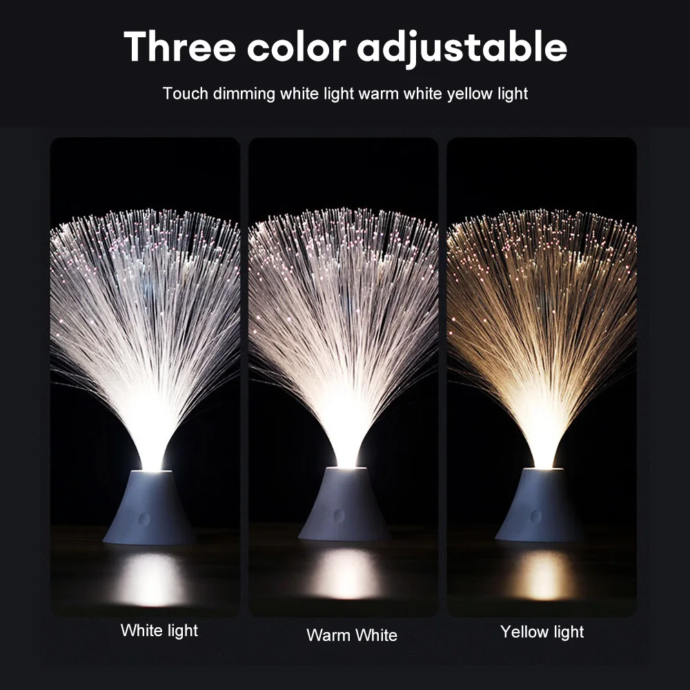 1: upgraded LED optical fiber lamp is divided into USB charging and USB in-line style, with 9-color light emission and 3-color light emission options. Touch button operation color temperature adjustable.