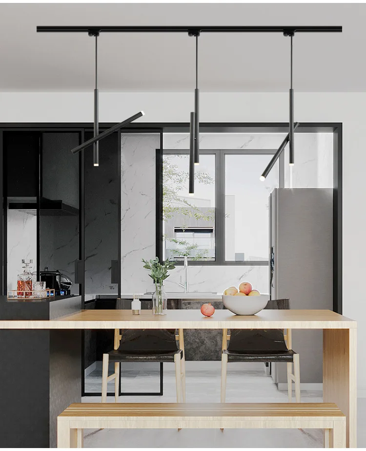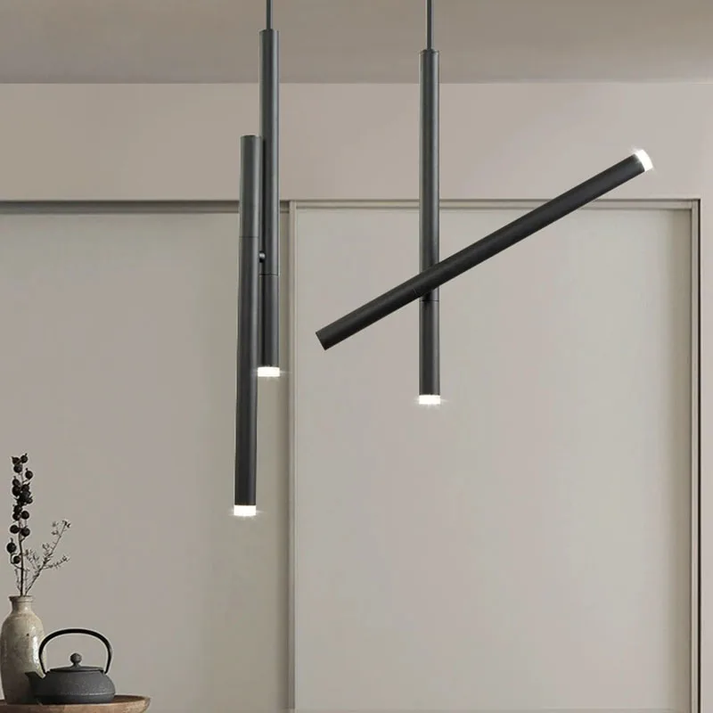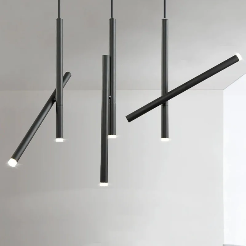 Nordic Long Tube Chandeliers Modern Aluminum Lighting Fixture for Living Room Bedroom Dining Table Decorative Track Pendant Lamp