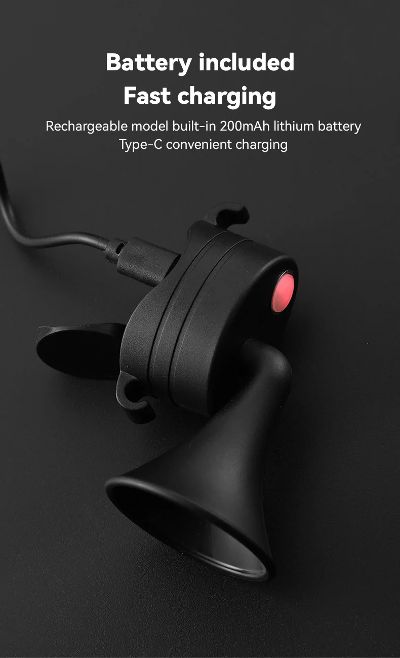 USB Rechargeable: This Bicycle Electronic Horn uses a rechargeable battery, which is easily replaceable and ensures long-lasting performance.