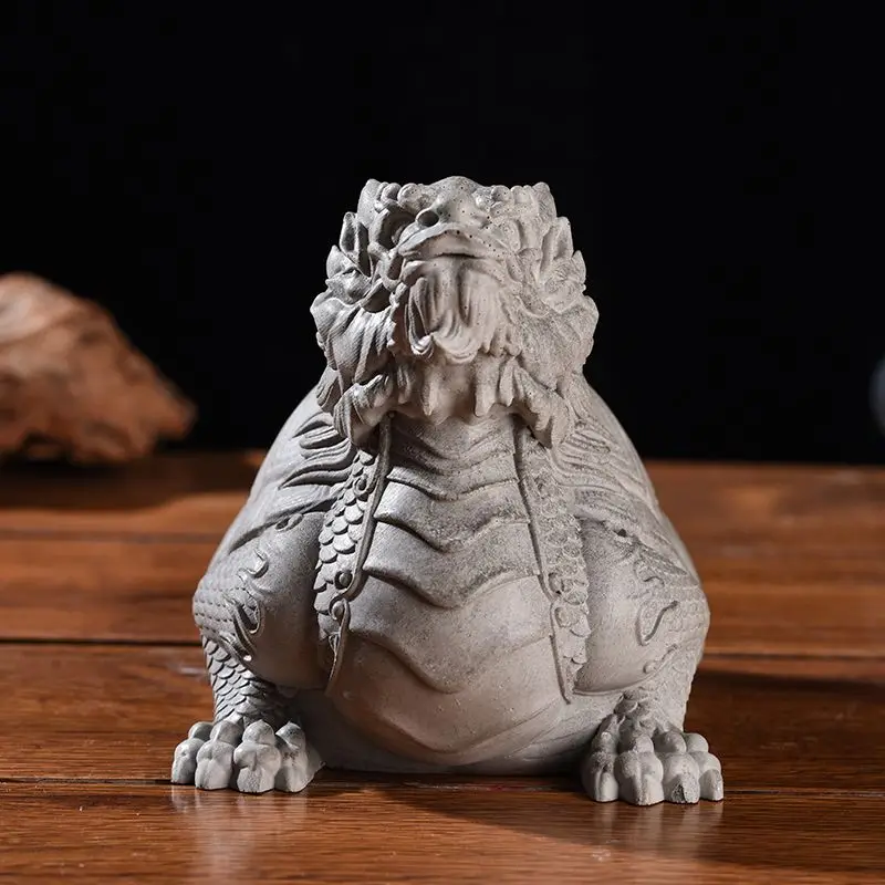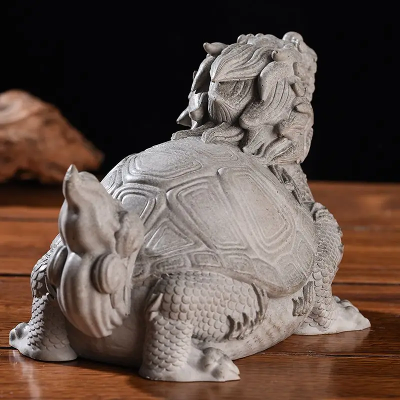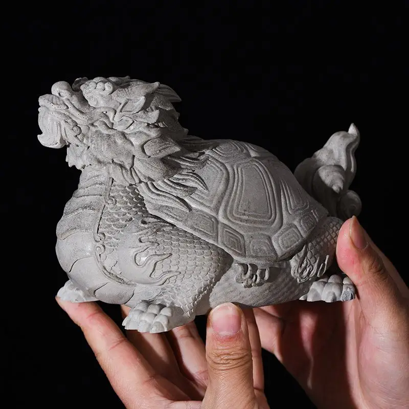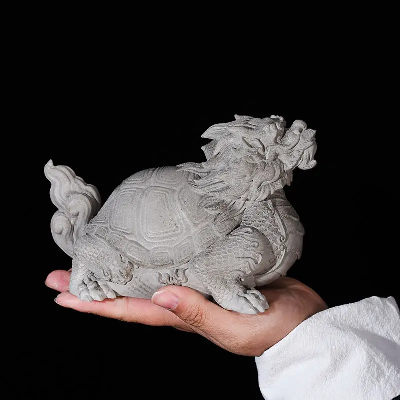 Auspicious Beast, Chinese-style Basalt Dragon Turtle Tea Pet Ornament