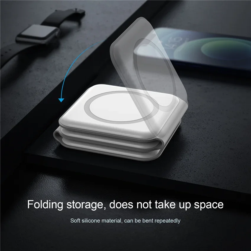 【Adjustable and Portable Design】 Soft silicone makes the 180° folding smooth, the wireless charging pad turns into a phone holder in seconds. When charging, the phone is placed horizontally to watch movies and vertically to chat. The charging board is covered with a magnetic device, which will not slip off even if it is shaken. It can be used in office, home, dining table and bedroom.