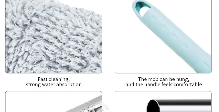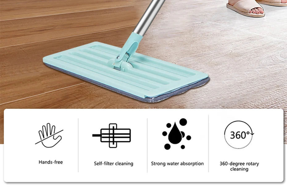 1.Hands Free Self-Squeeze,squeeze flat mop can keep your hands from dirt, innovative straight washing system makes washing and squeezing more easily.