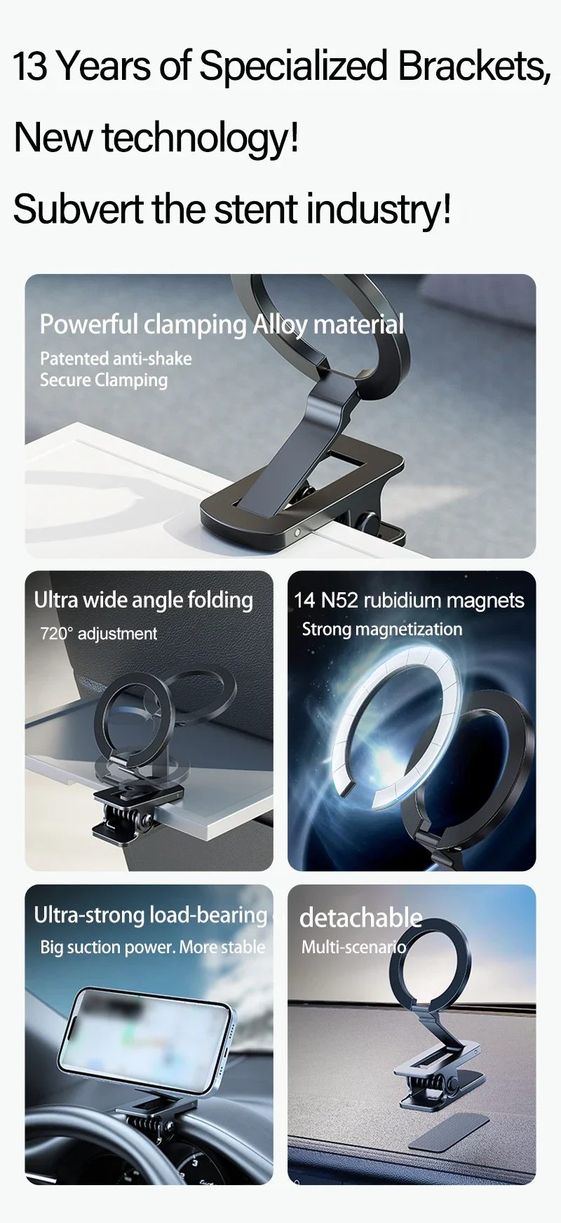 Mag Mount Fold, Metal Magnetic Car Phone Holder for iPhone, Samsung, Xiaomi