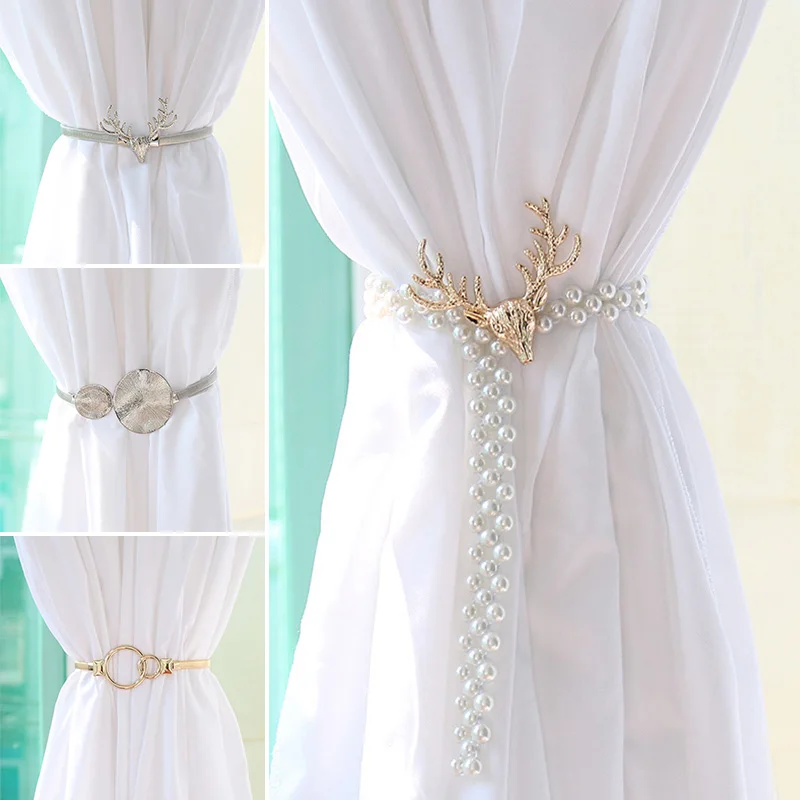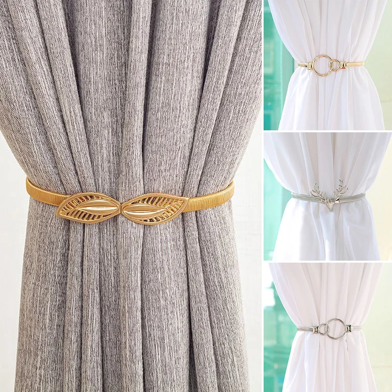 1PC Golden Silver Curtain Buckles Creative Metal Spring Curtain Strap Tie Rope Curtain Buckle Accessories Home Decor