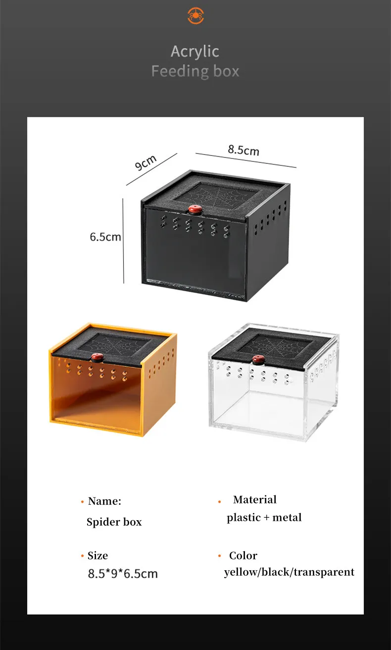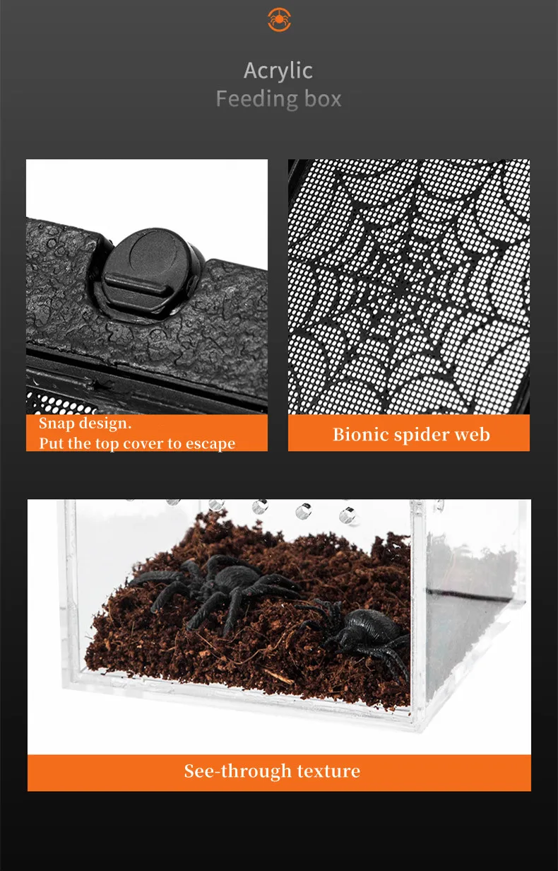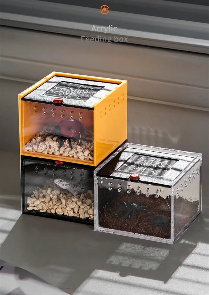 Pet Spider Box Reptile Crawling Pet Feeding Lizard Silkworm Baby Scorpion Unicorn Beetle Insect Pet House Black Acrylic Box