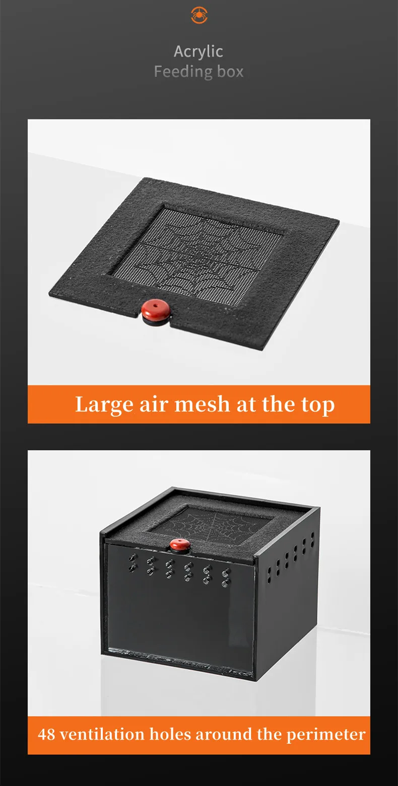 The feeding box is reasonably designed and well ventilated, which can provide a comfortable and safe living environment for your insects.