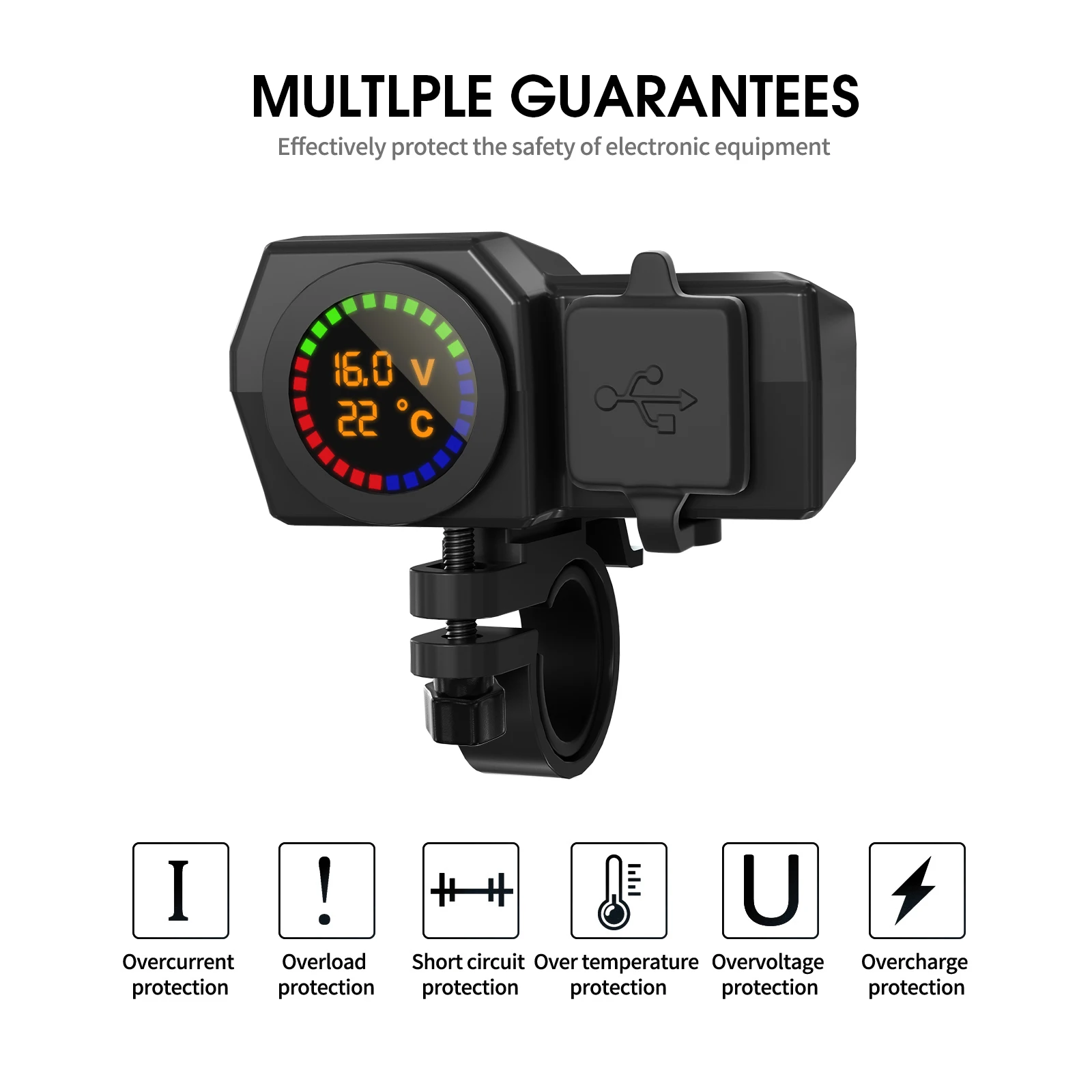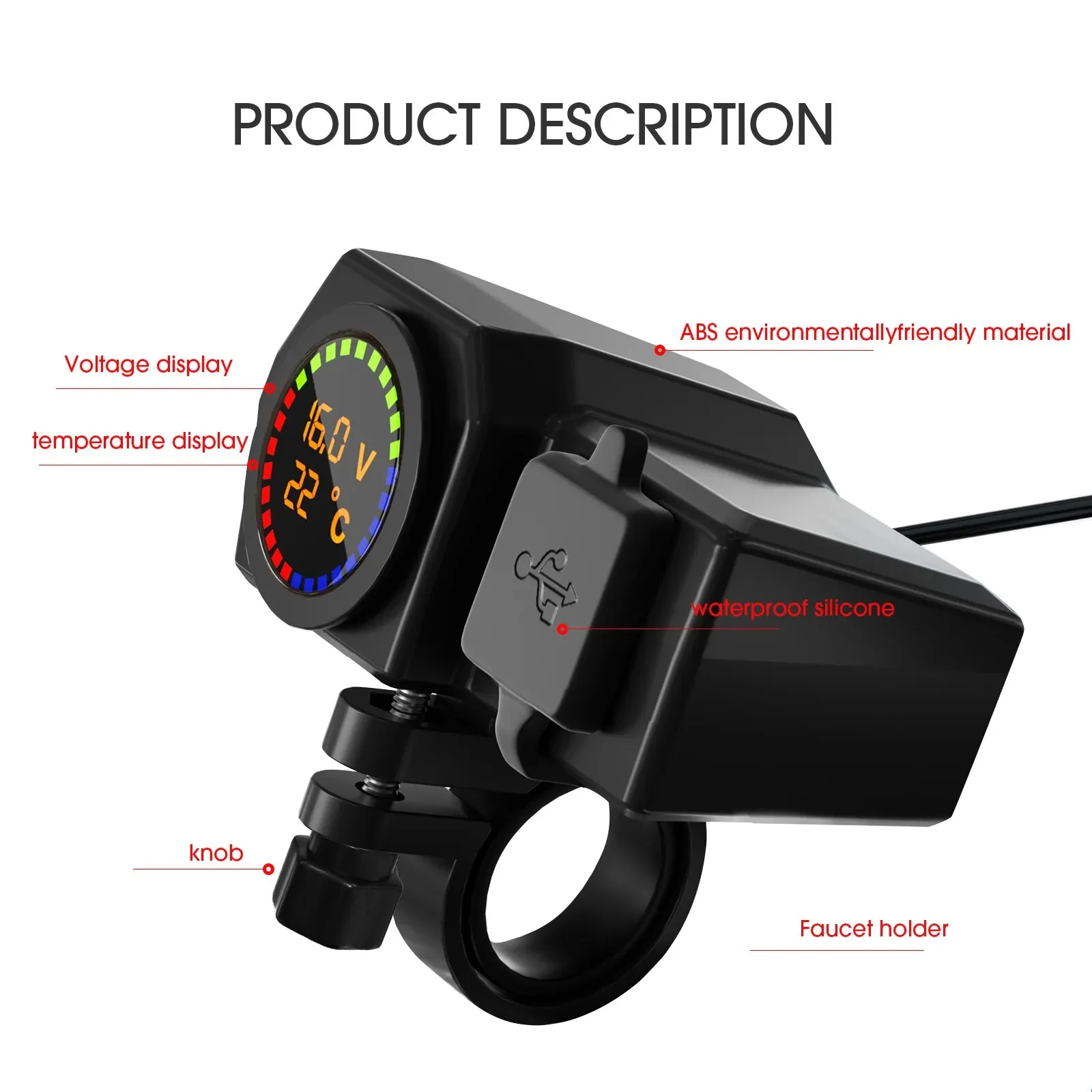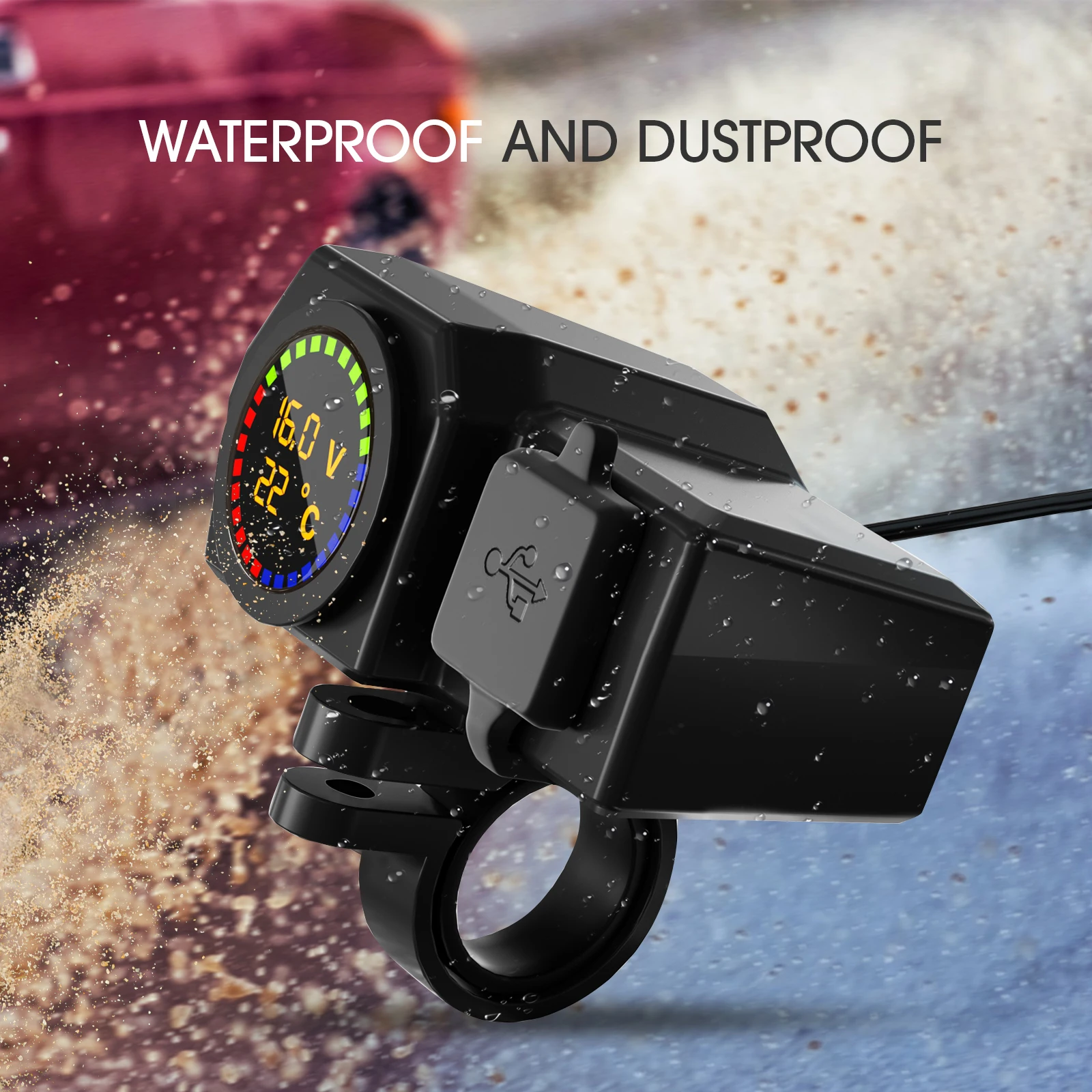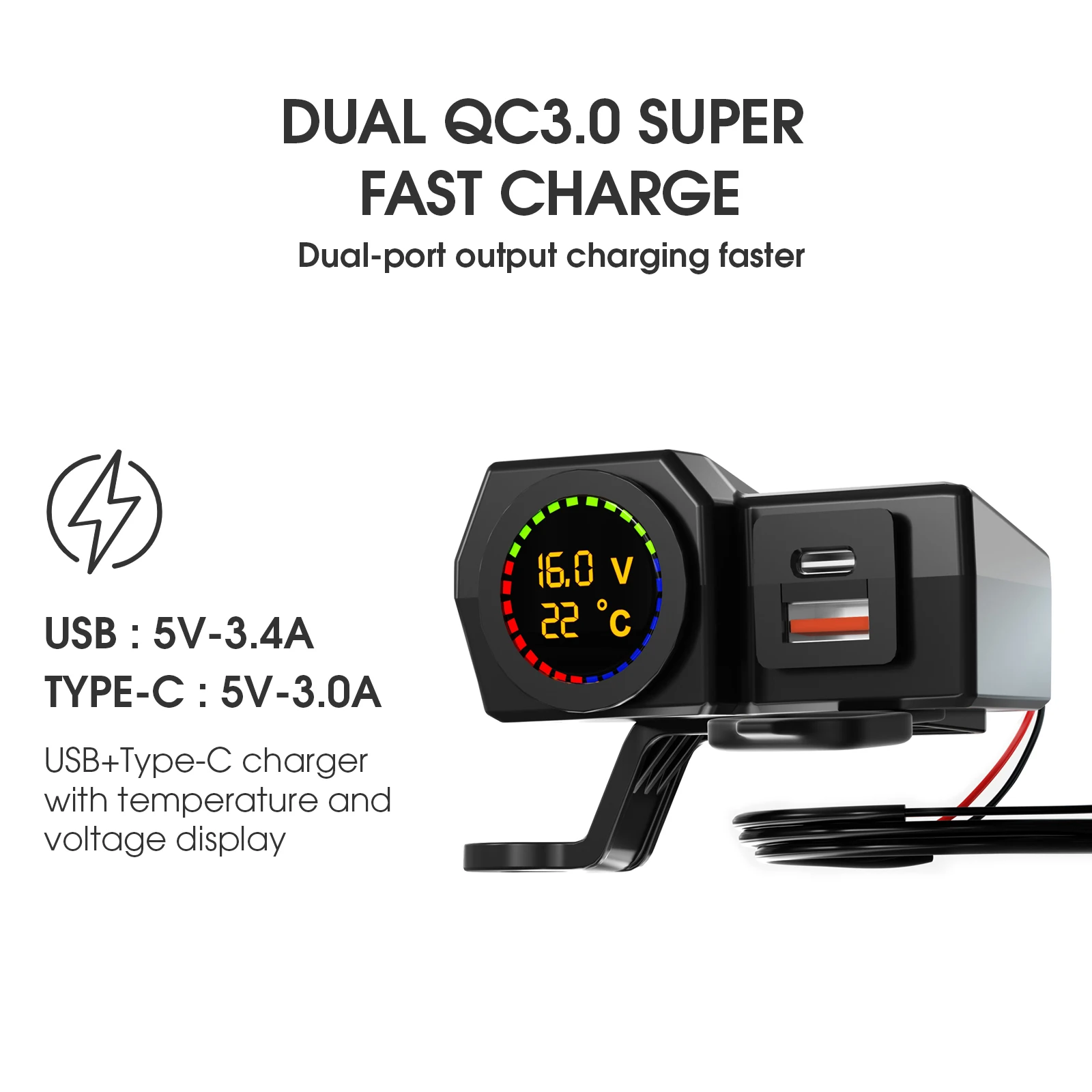 Motorcycle Fast Charger Kit with Voltage Temperature Display and USB