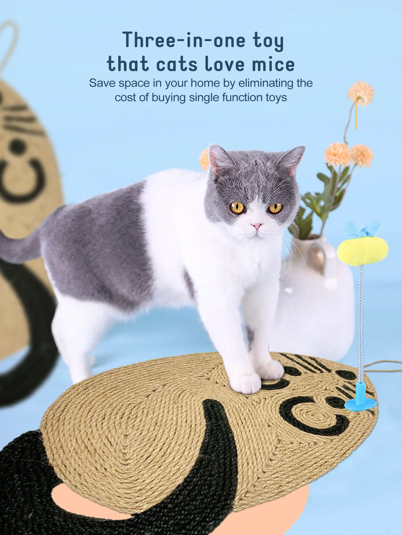 Mouse-Shaped Non-Slip Cat Scratching Pad with Sisal Surface