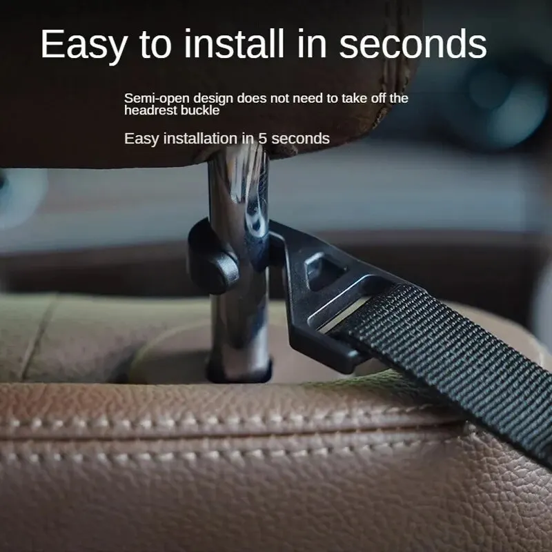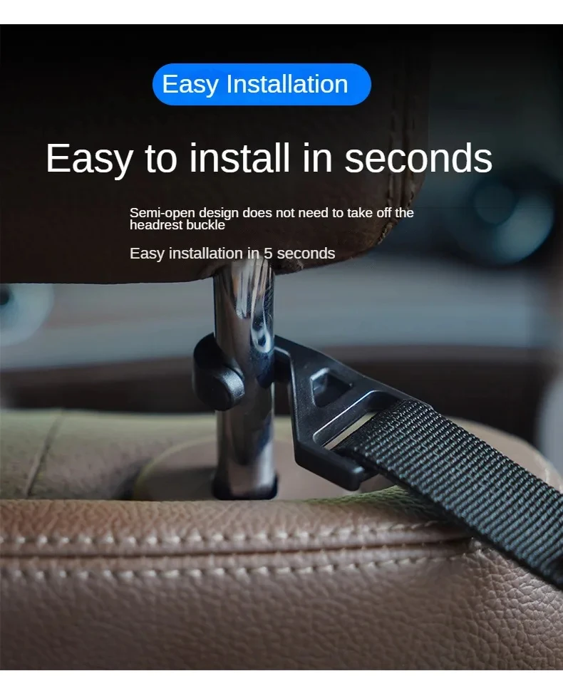 *3. Easy To Install: The seat back hook can be installed or removed in two seconds without raising the headrest. Nylon fabric straps ensure that they are flexible enough to hang smoothly on any type of seat and sag directly. The design allows easy installation in the back seat and trunk.