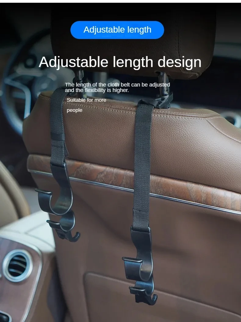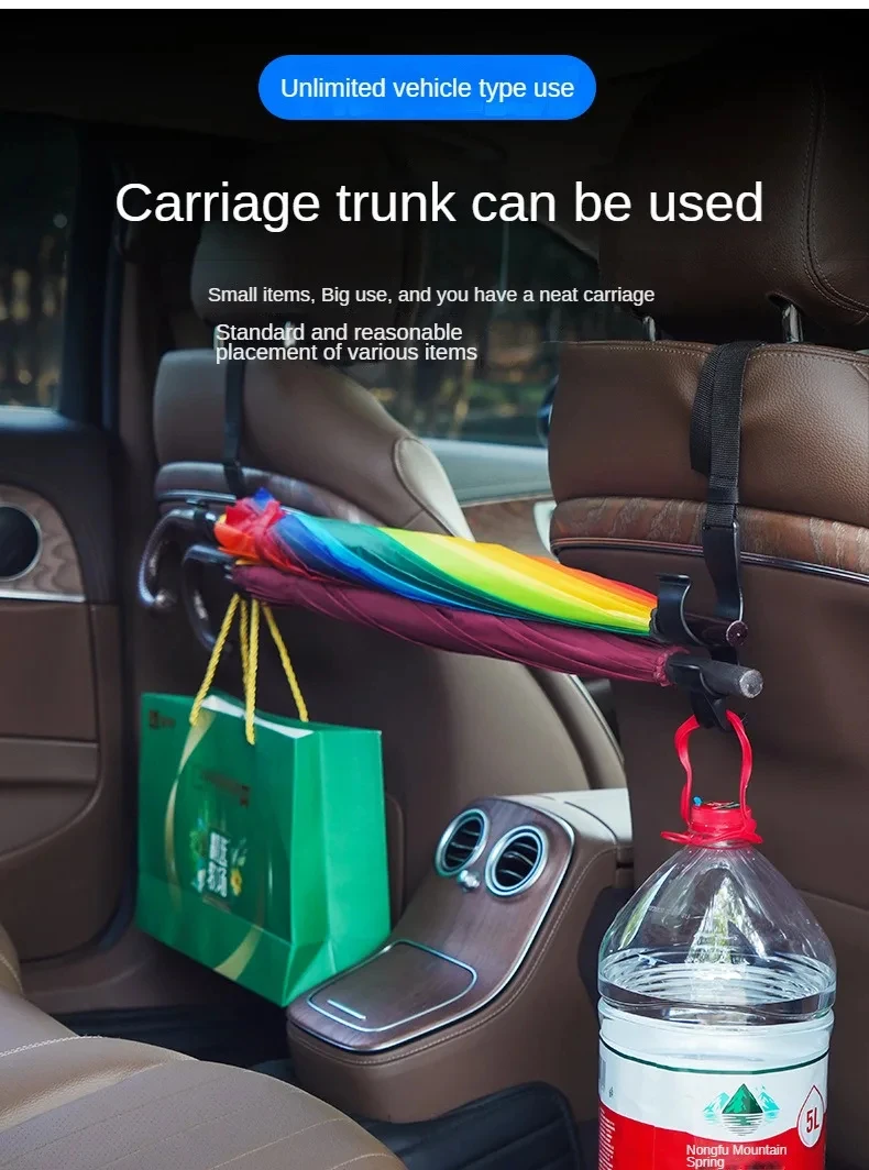Multi-Function Rear Seat Headrest Hooks for Car Storage