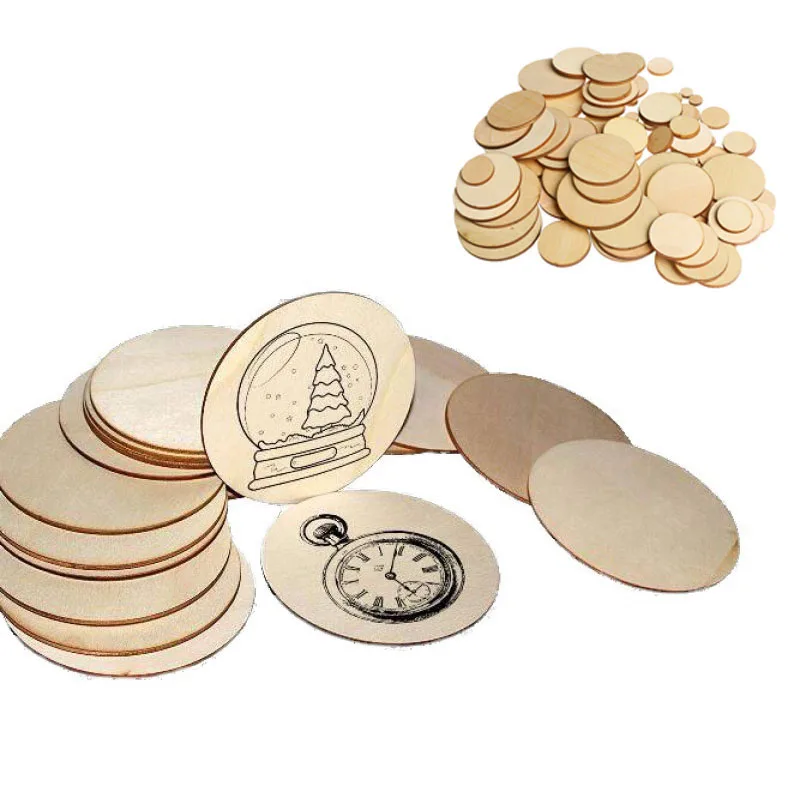 25/50/100 PCS Natural Wooden Handmade Round Slices Ornaments Scrapbooking Chip Hand-painted Unfinished Decor Home Card Crafts
