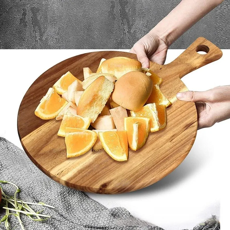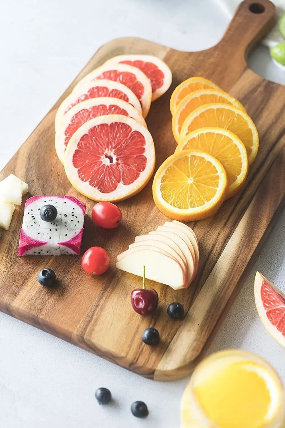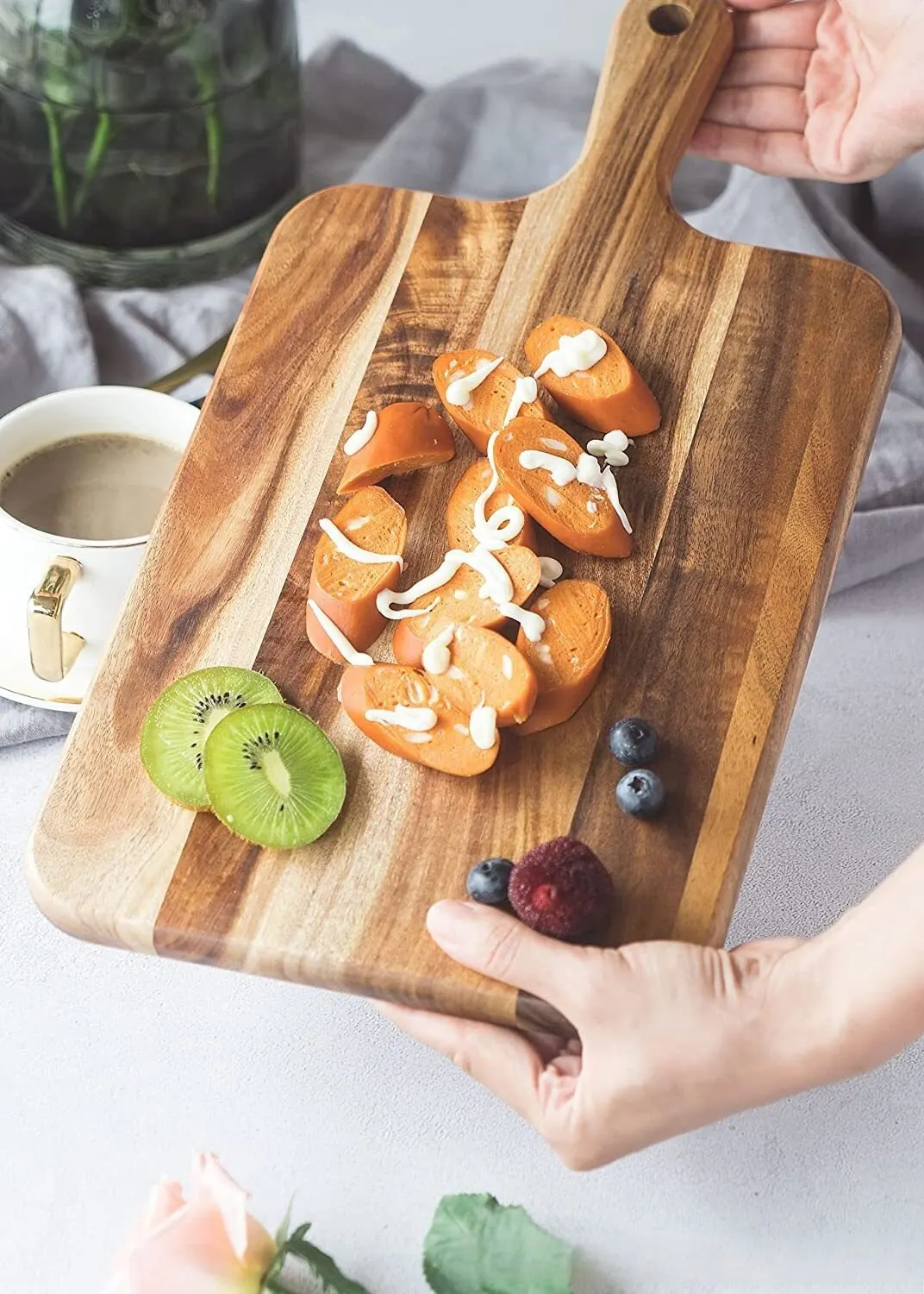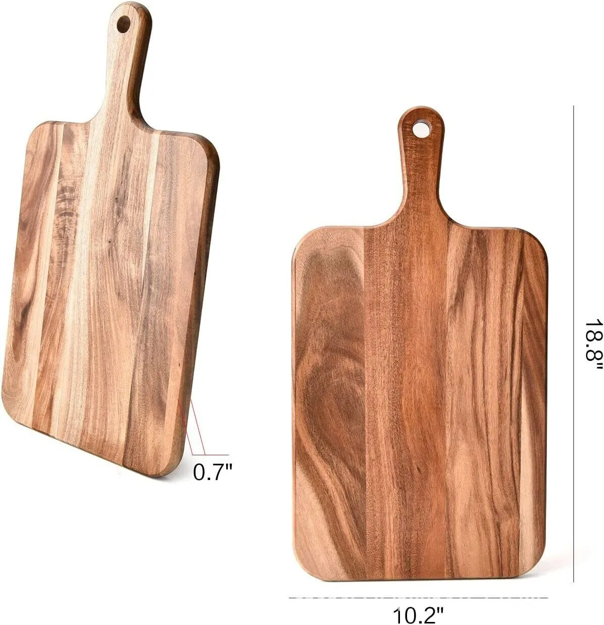 2.(High Quality Material) Our cutting board with the handle is made of high quality acacia wood, which is sturdy,