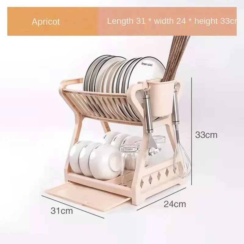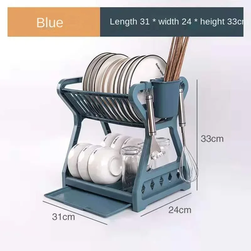 New Double-layer Kitchen Dish Bowl Draining Storage Rack with Chopstick Cage Household Tableware Organizer Tray Box Basket