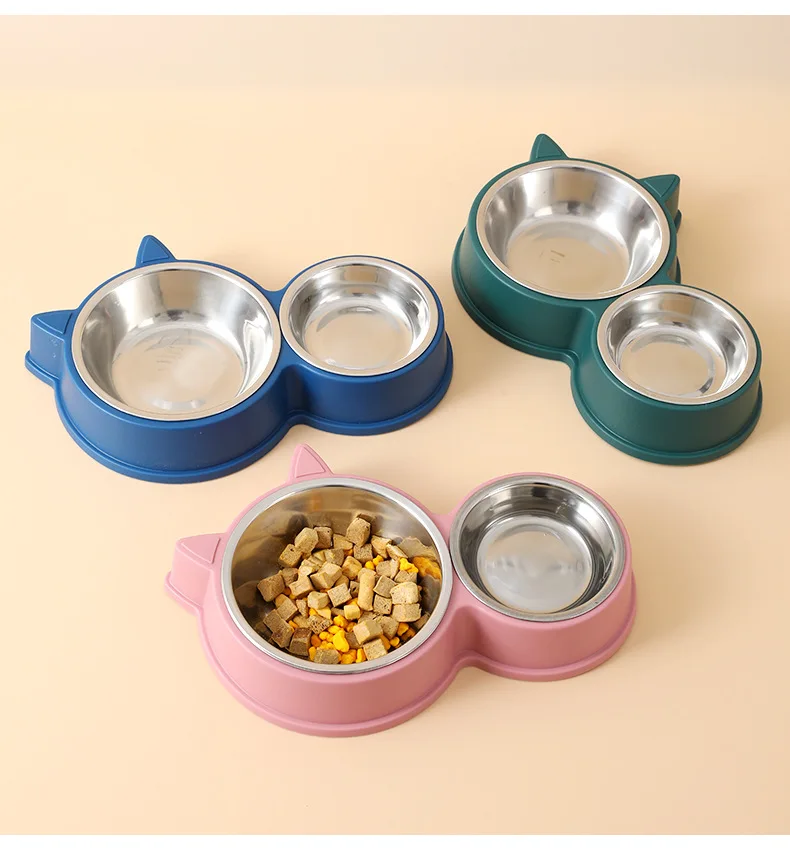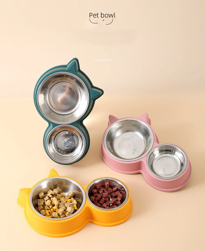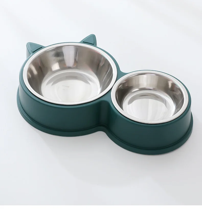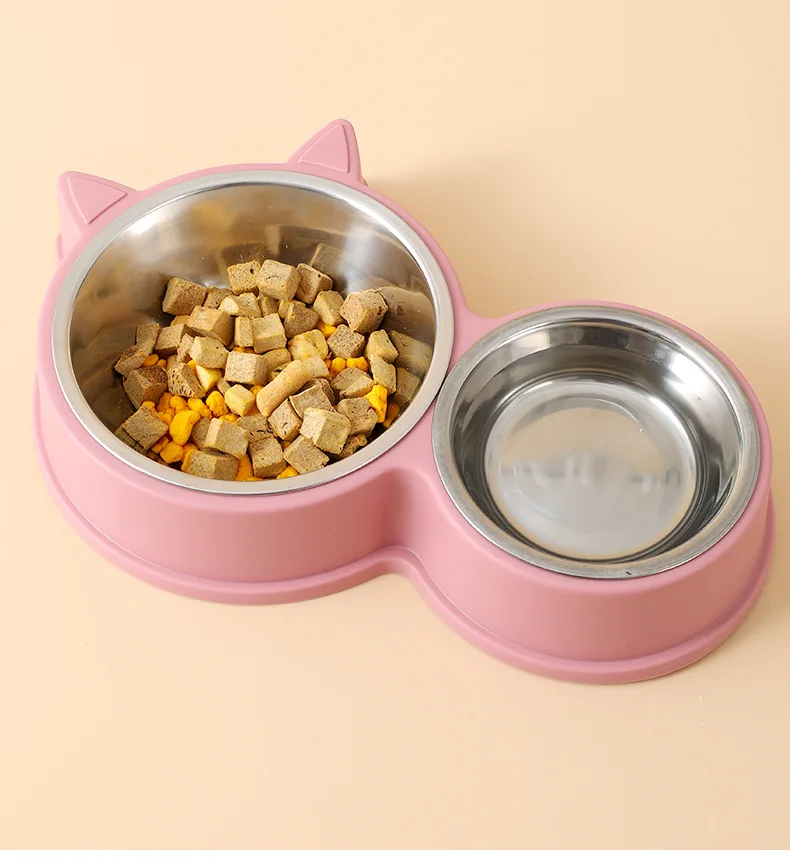 New Puppy and Kitten Feeding Supplies, Stainless Steel Pet Drinking Dish with Two Bowls for Food and Water