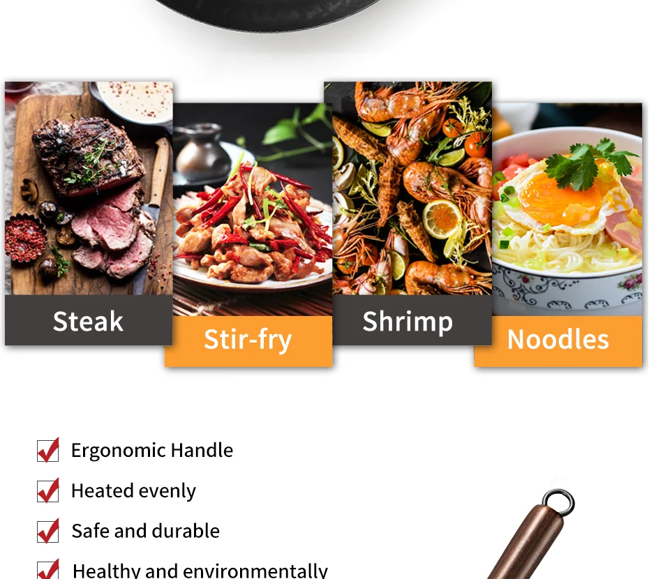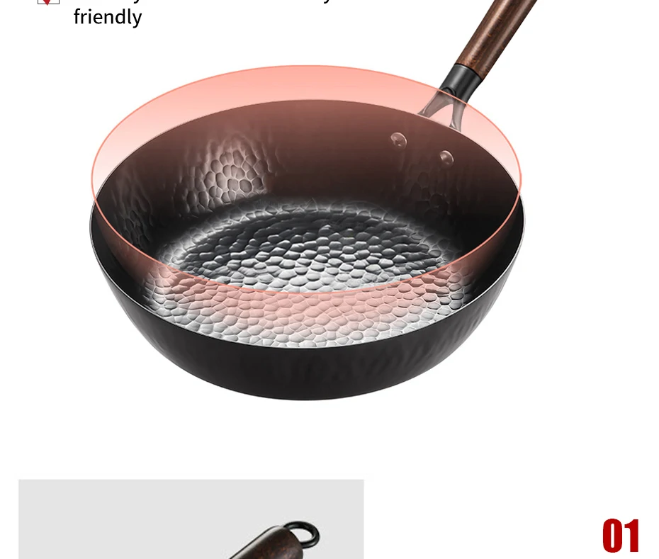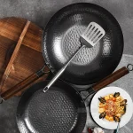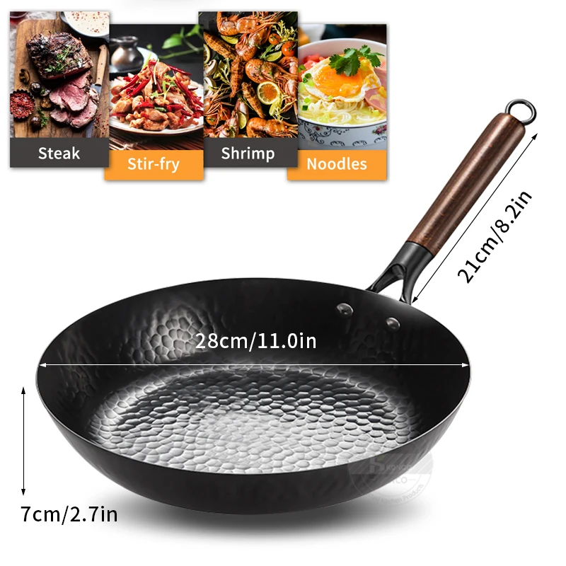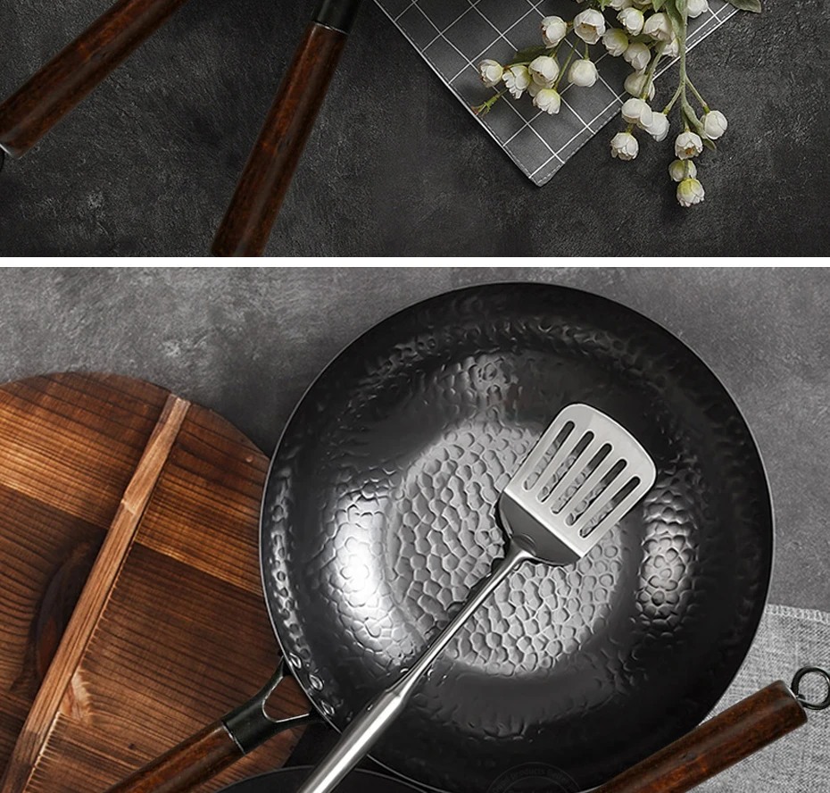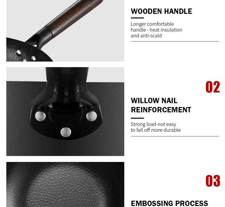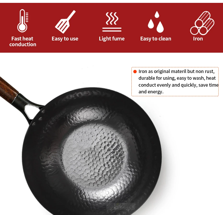 1.Uncoated wok surface, anti scratch from metal shovel or spatula;