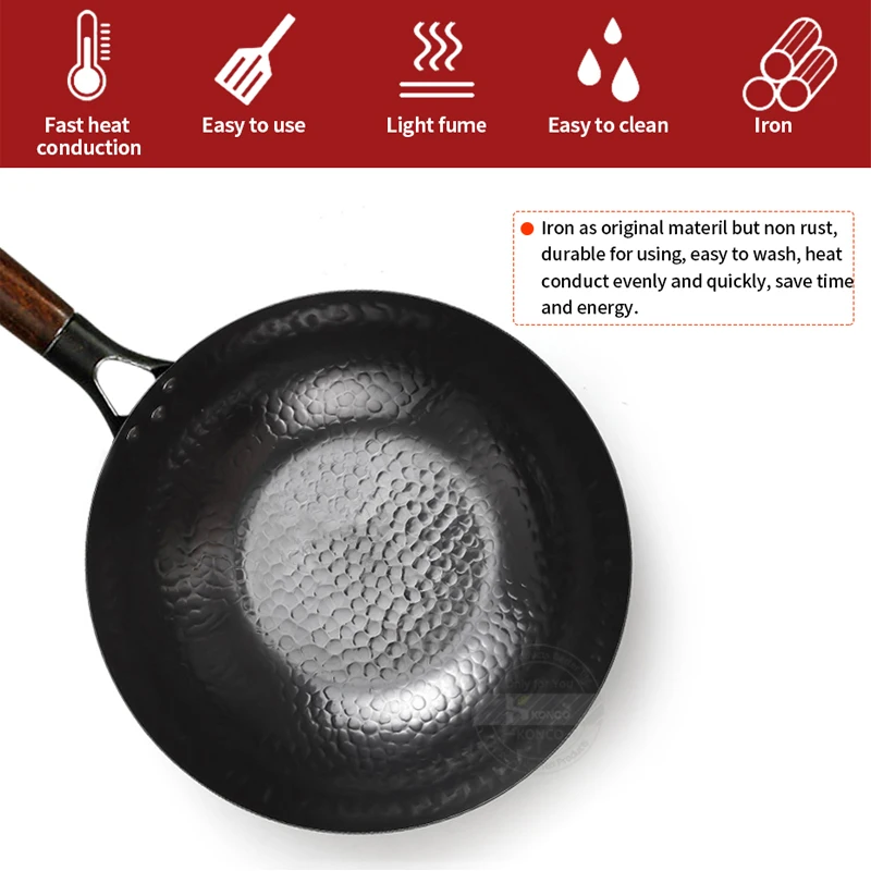 ********* KONCO-Chinese Traditional Handmade Iron Wok *********** >>Product information: Material: cast iron