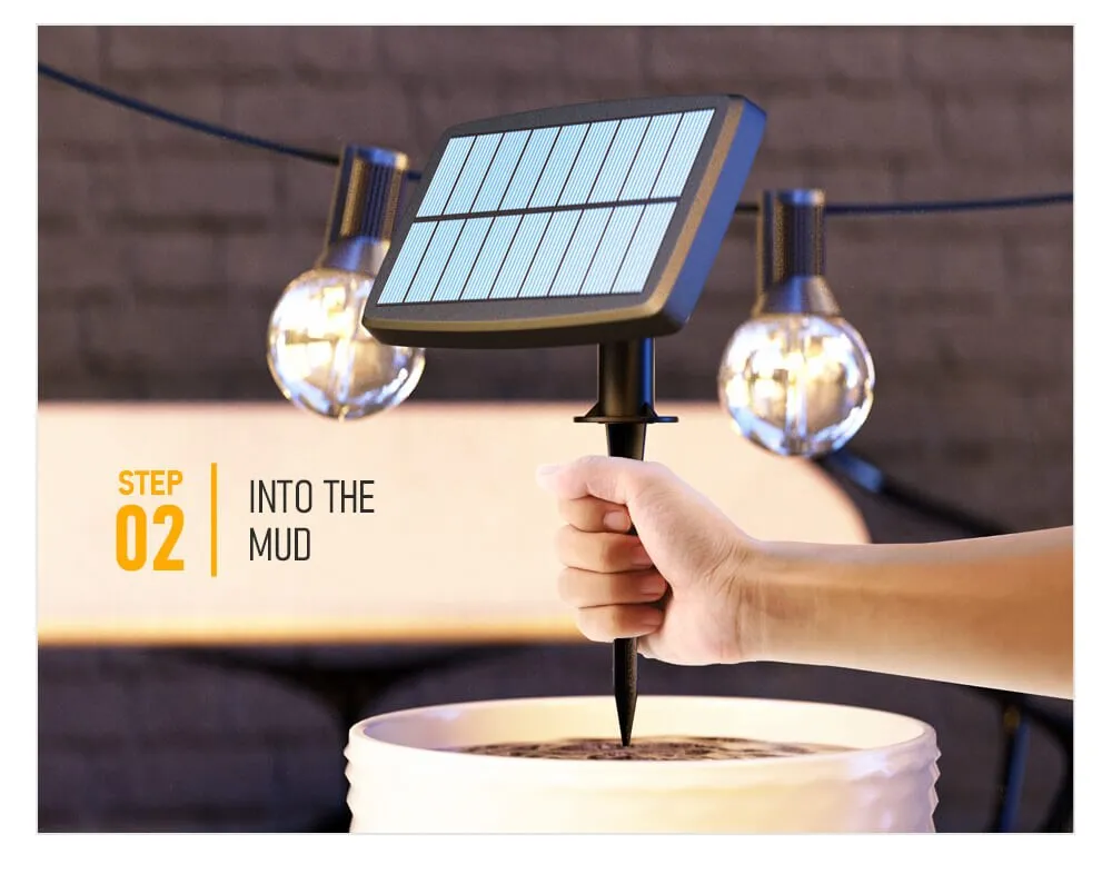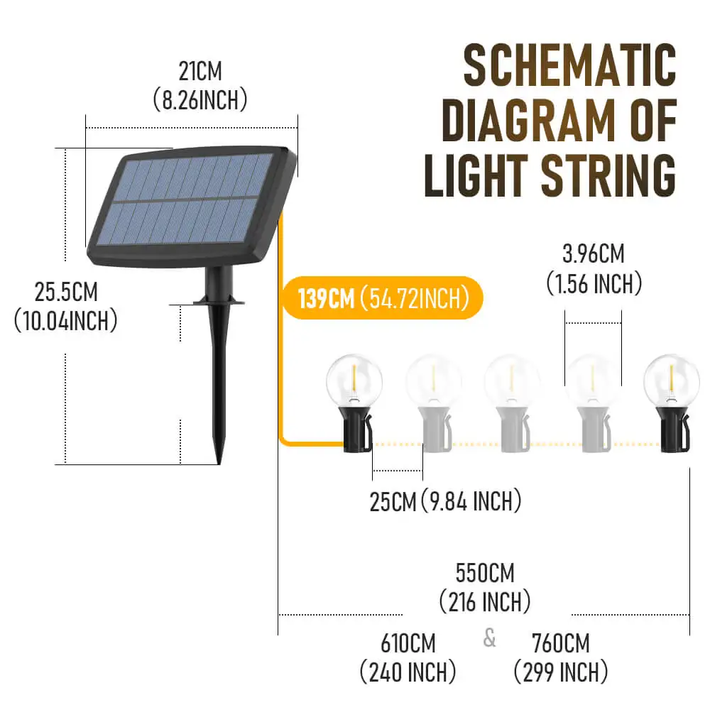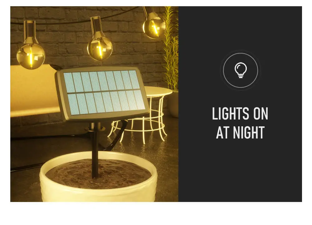 ❄Solar panels with high light conversion rate. The solar panels of our string lights have higher conversion efficiency and power output. It also has a longer lifespan and is more effective in warm weather. Operating conditions are -5°F to 120°F (-20°C to 48°C).