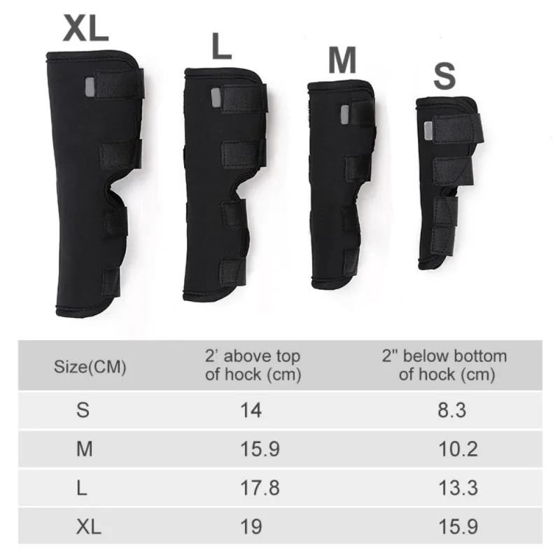 2 above bottom of hock:3.27″/8.3 cm, 4.02″/10.2 cm,5.24″/13.3 cm,6.26/15.9 cm