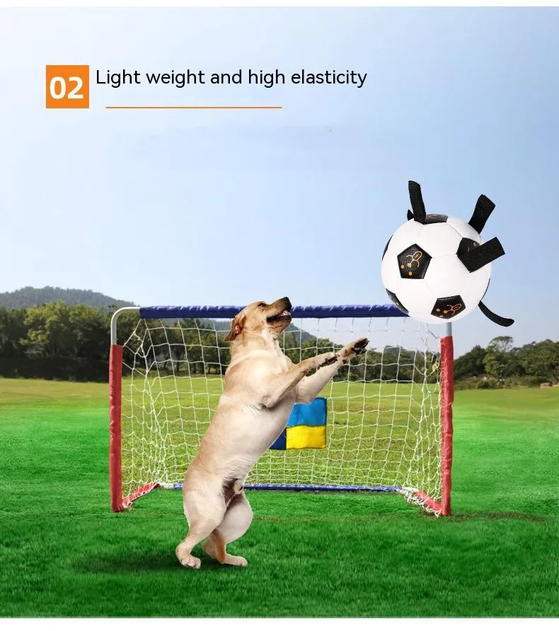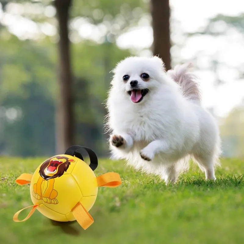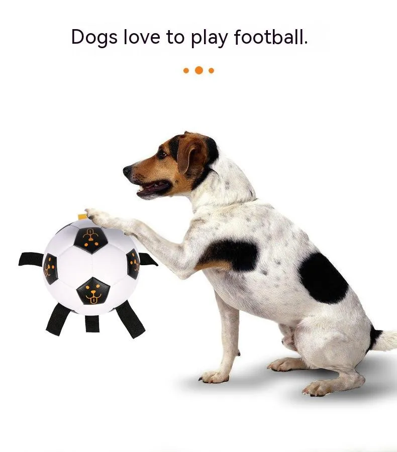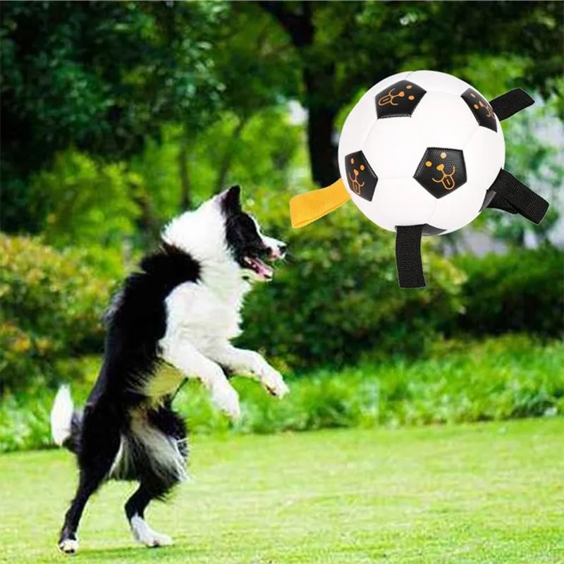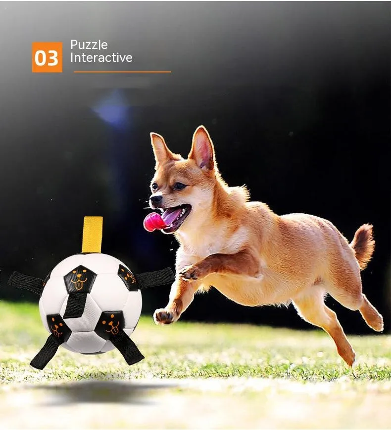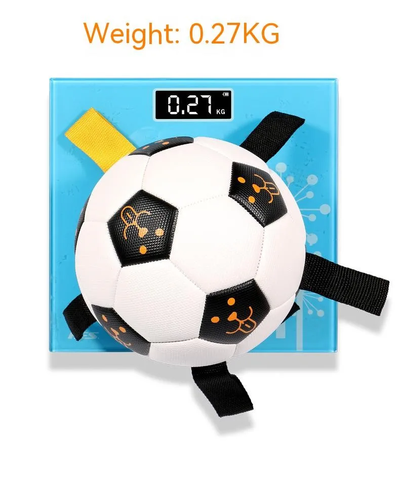 UNIQUE DURABLE NYLON TABS: Durable nylon tabs are sewn into the seams of our dog soccer ball to give your pet a new way to pull, toss and tug the lightweight dog toy. Our dog ball also has a handle so you can play too. Our dog toy ball comes deflated with needle included. PUMP NOT INCLUDED.