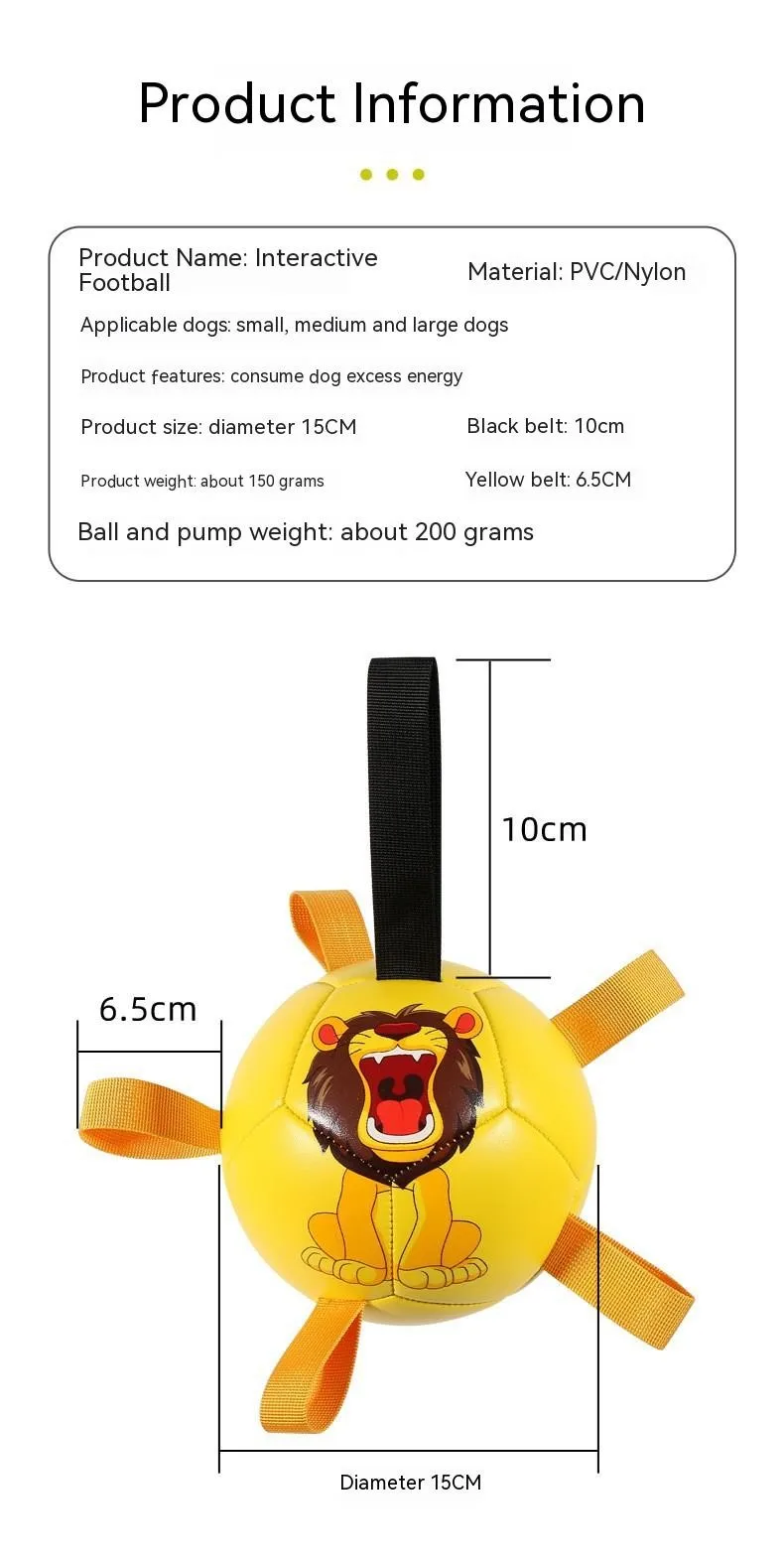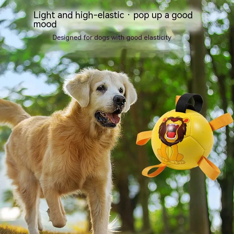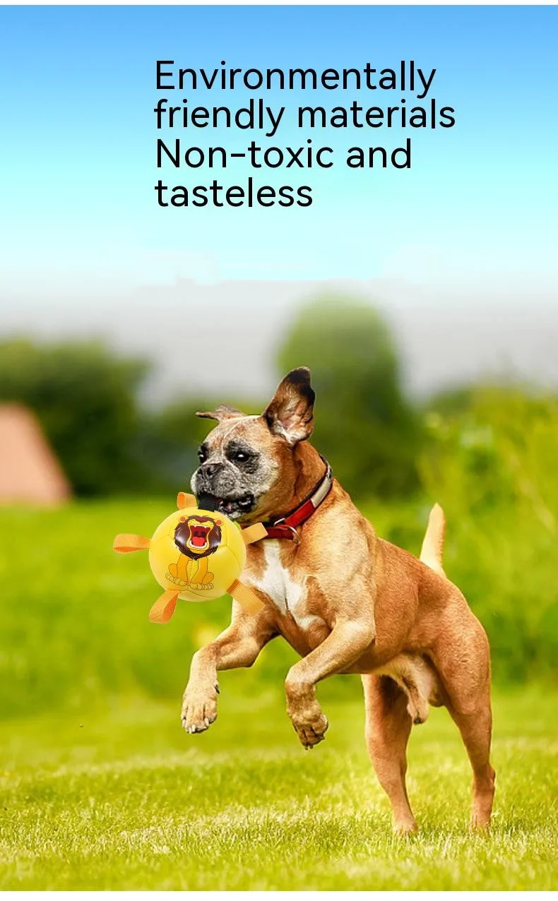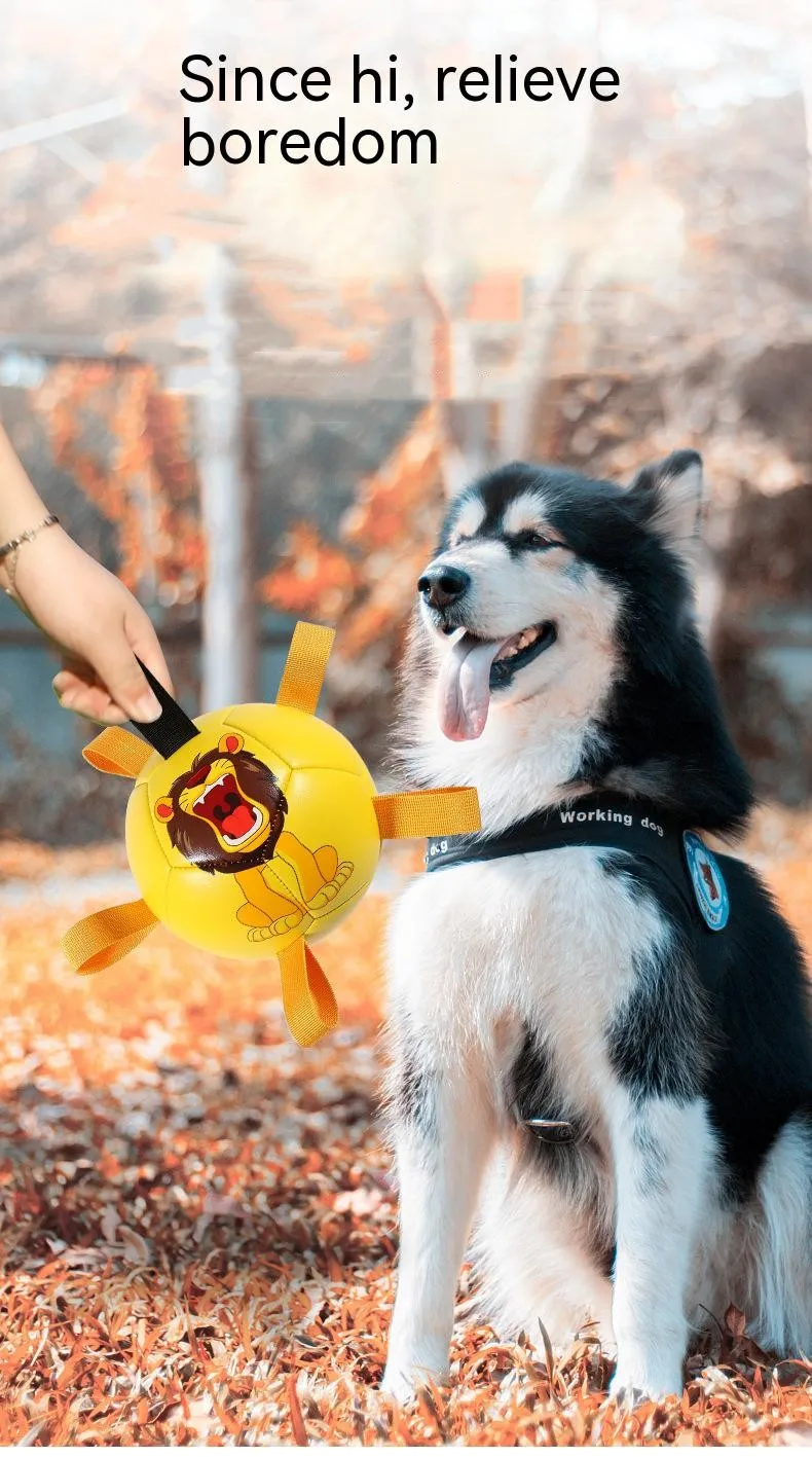 UNIQUE DURABLE NYLON TABS: Durable nylon tabs are sewn into the seams of our dog soccer ball to give your pet a new way to pull, toss and tug the lightweight dog toy. Our dog ball also has a handle so you can play too. Our dog toy ball comes deflated with needle included. PUMP NOT INCLUDED.
