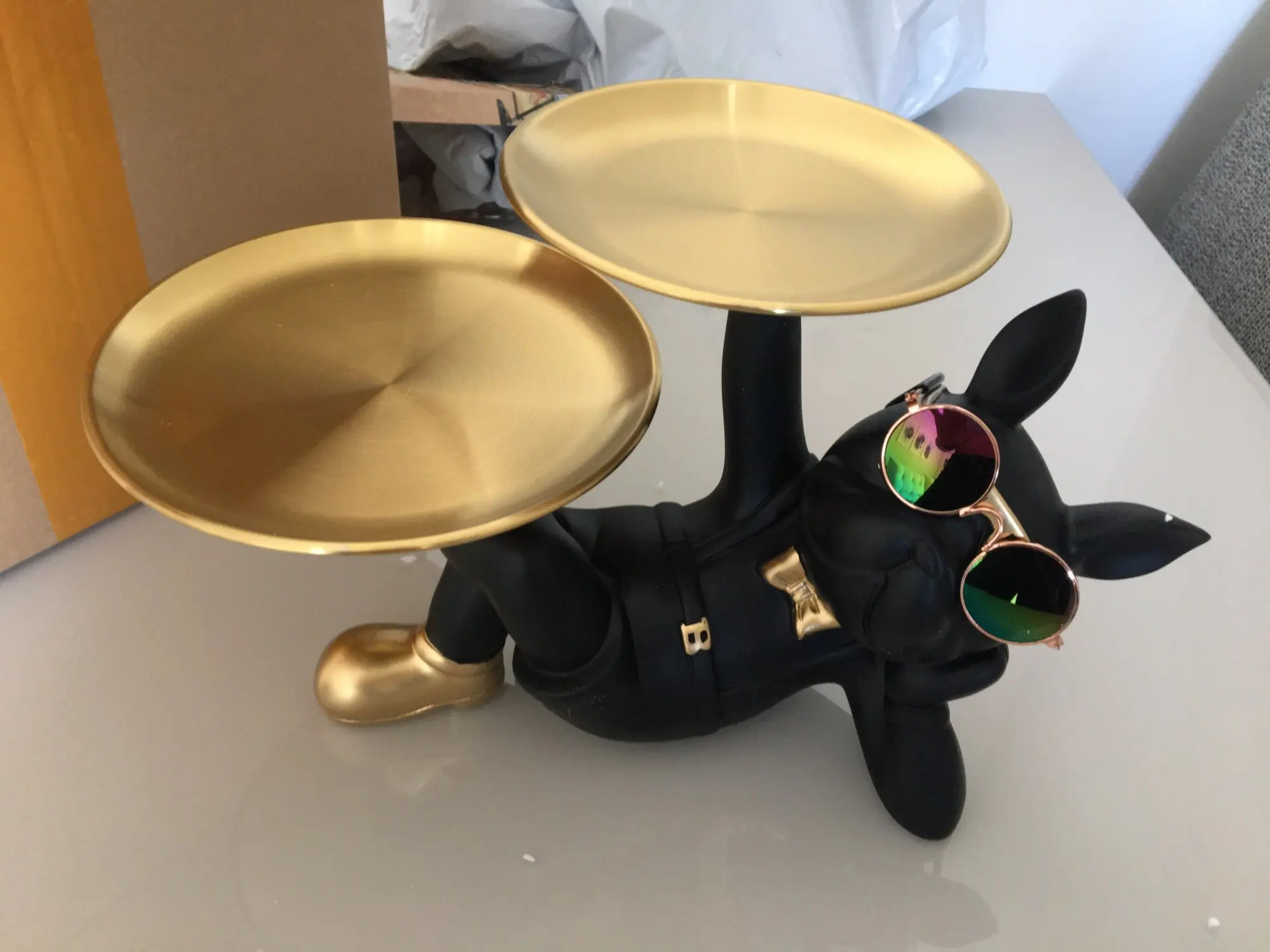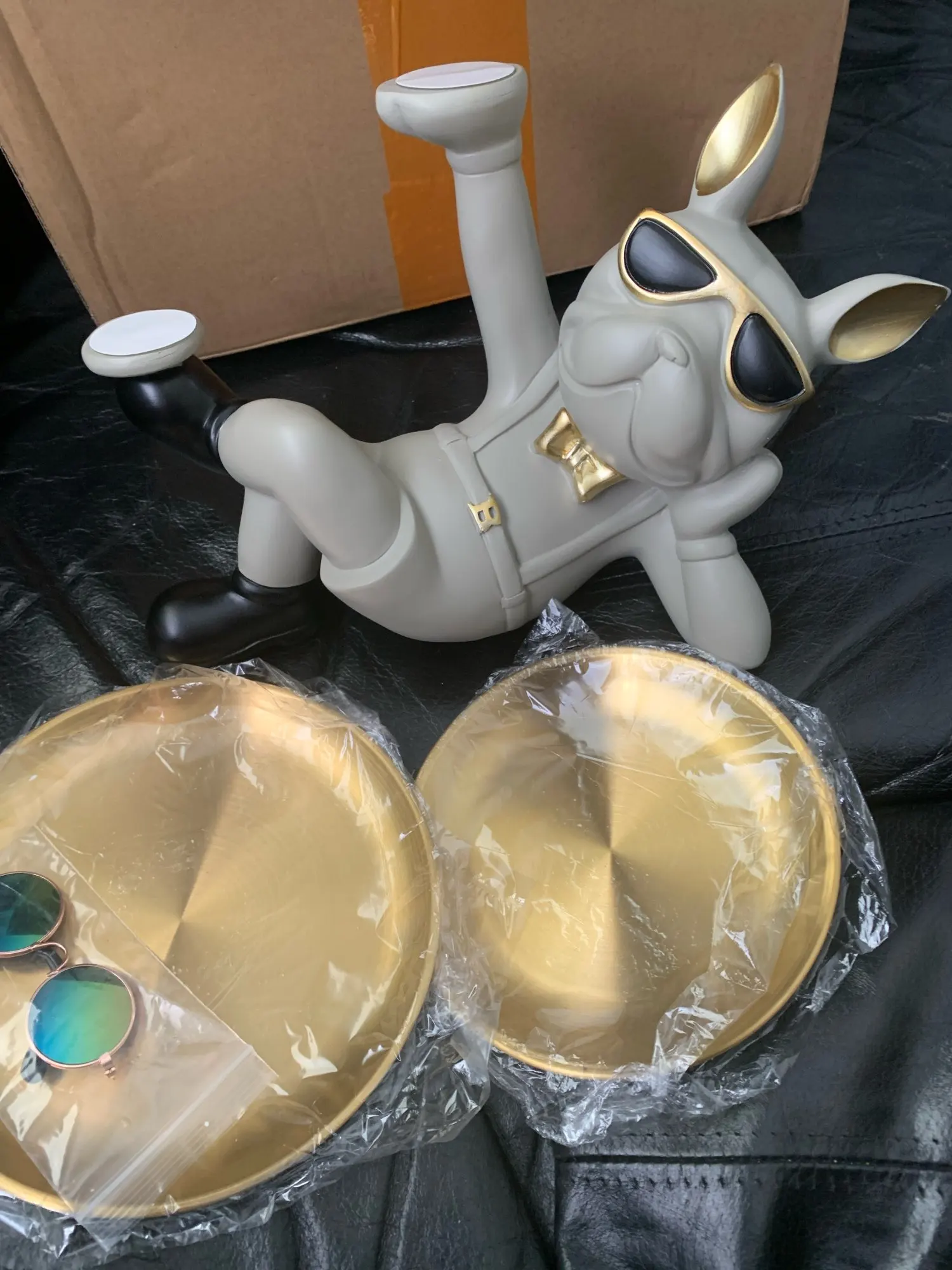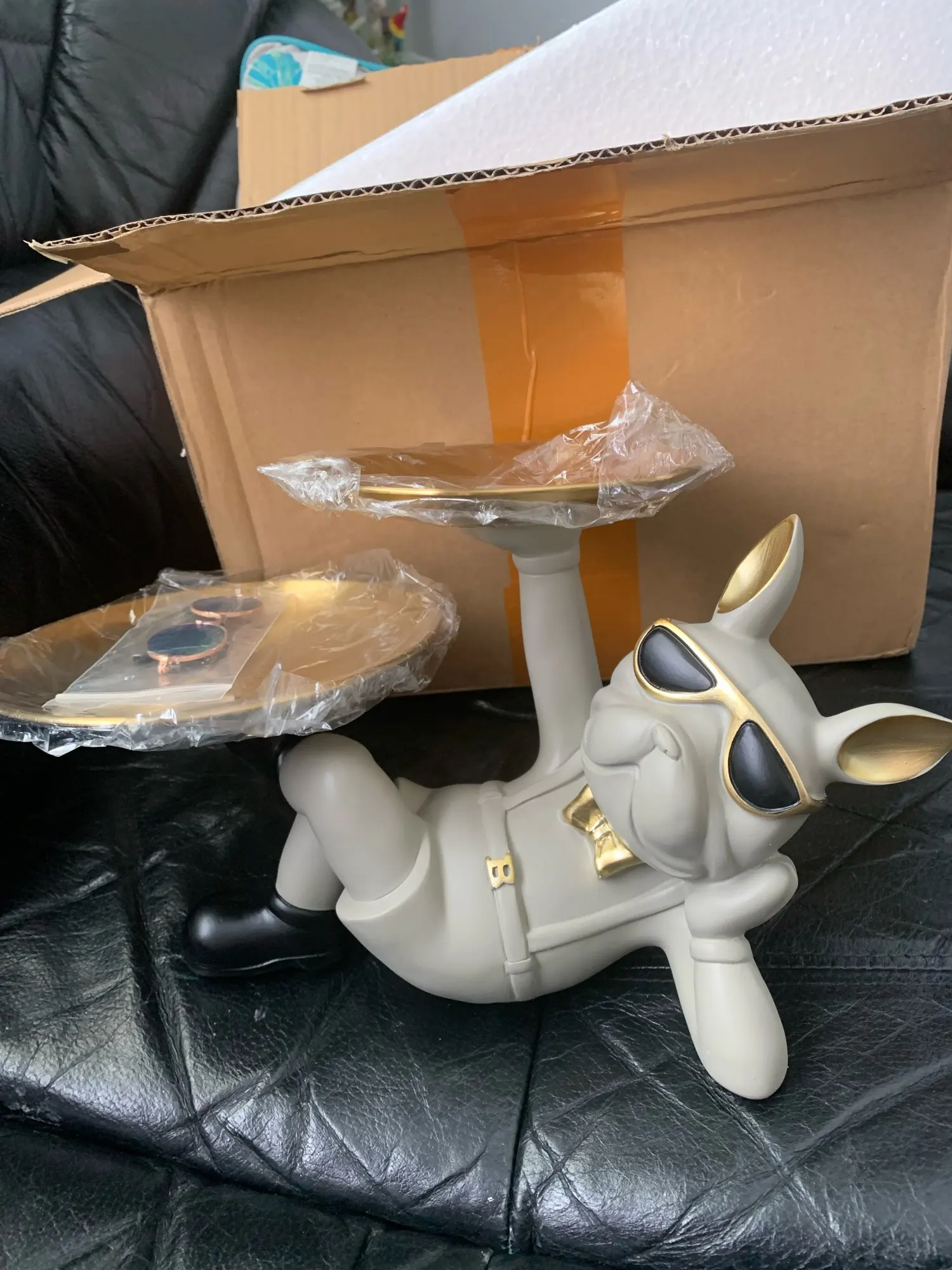 Bulldog Butler: Resin Desktop Storage Statue - Multifunctional Office & Home Decoration Tray