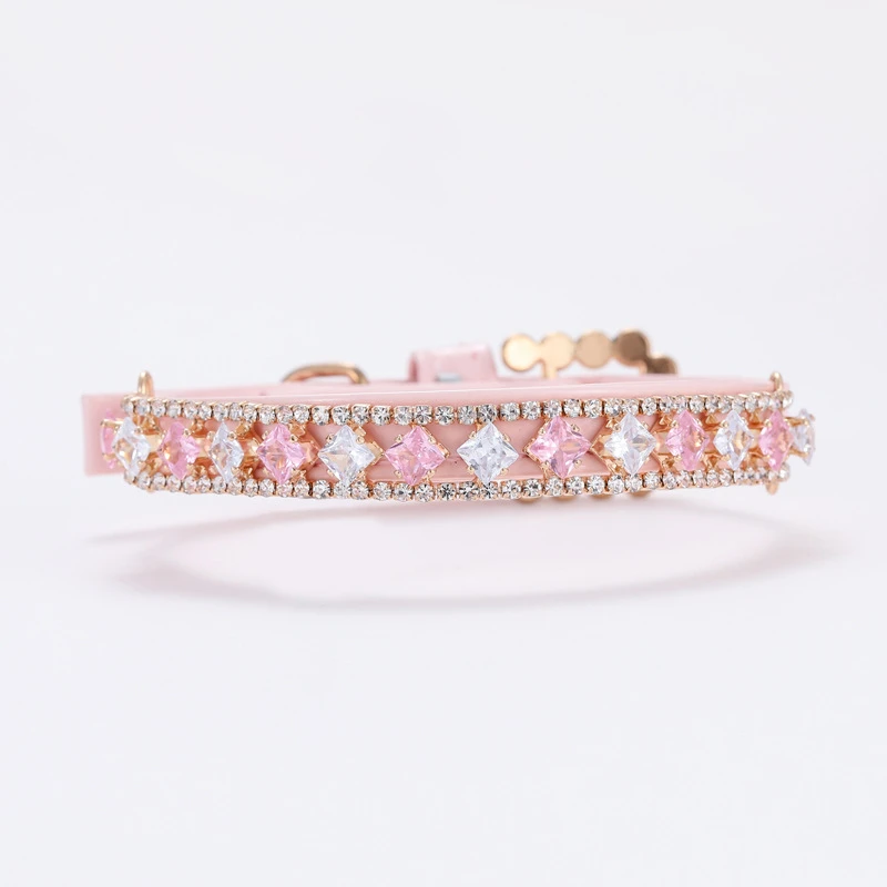Pearl Paws Collar: Adjustable PU Leather Neck Strap Adorned with Crystal Rhinestones for Your Elegant Dog or Cat