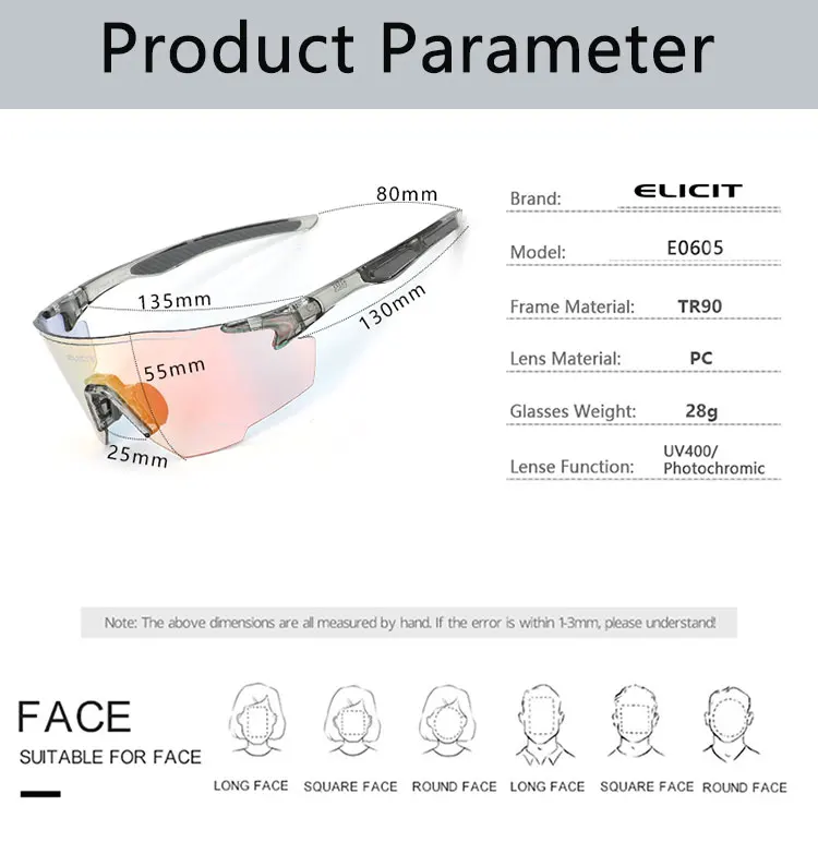 Photochromic Cycling Glasses for Men and Women Outdoor Sports