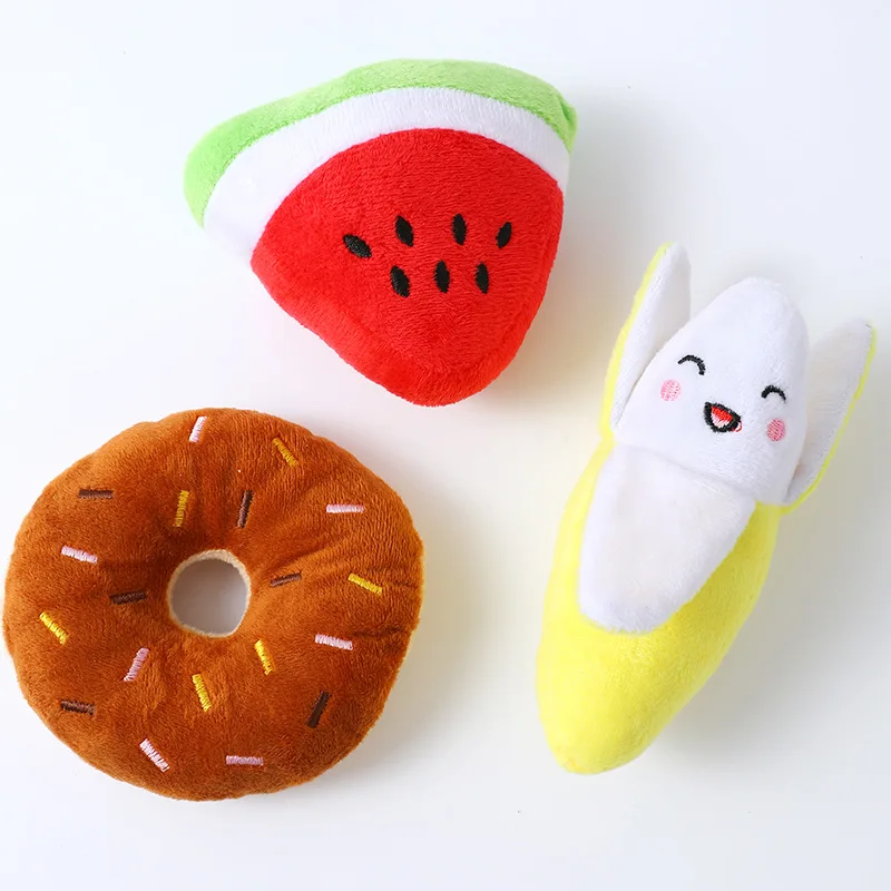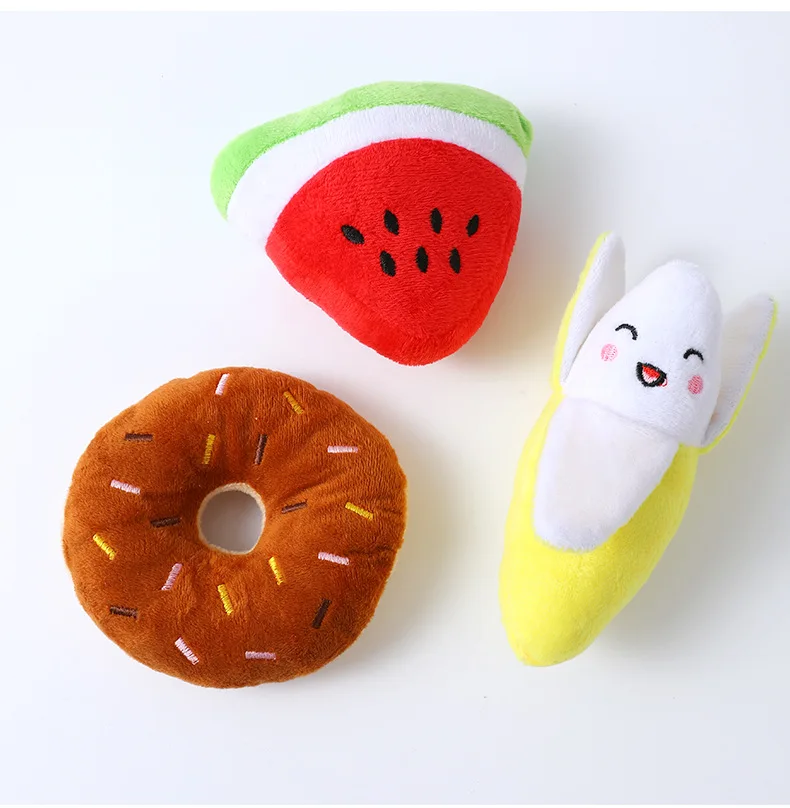 Plush Squeaky Bone Dog Toys. Fun Chewables for Small to Medium Dogs, Including Banana and Lobster Designs