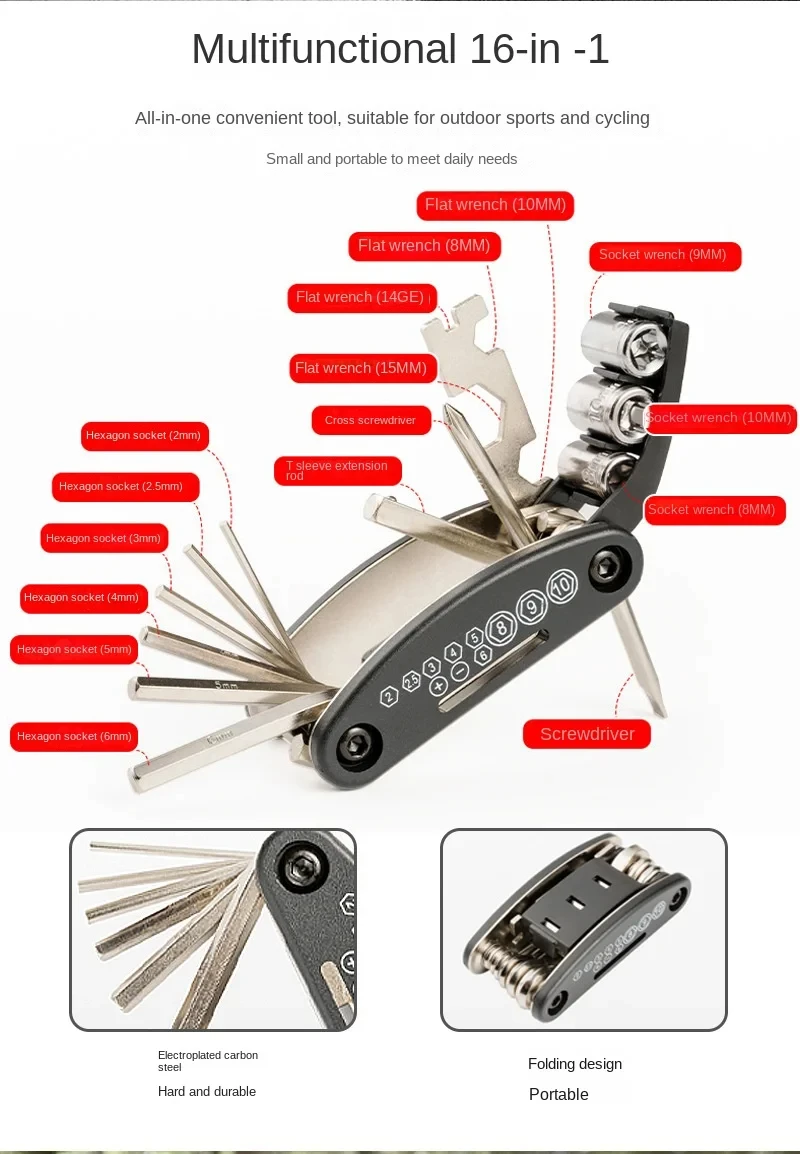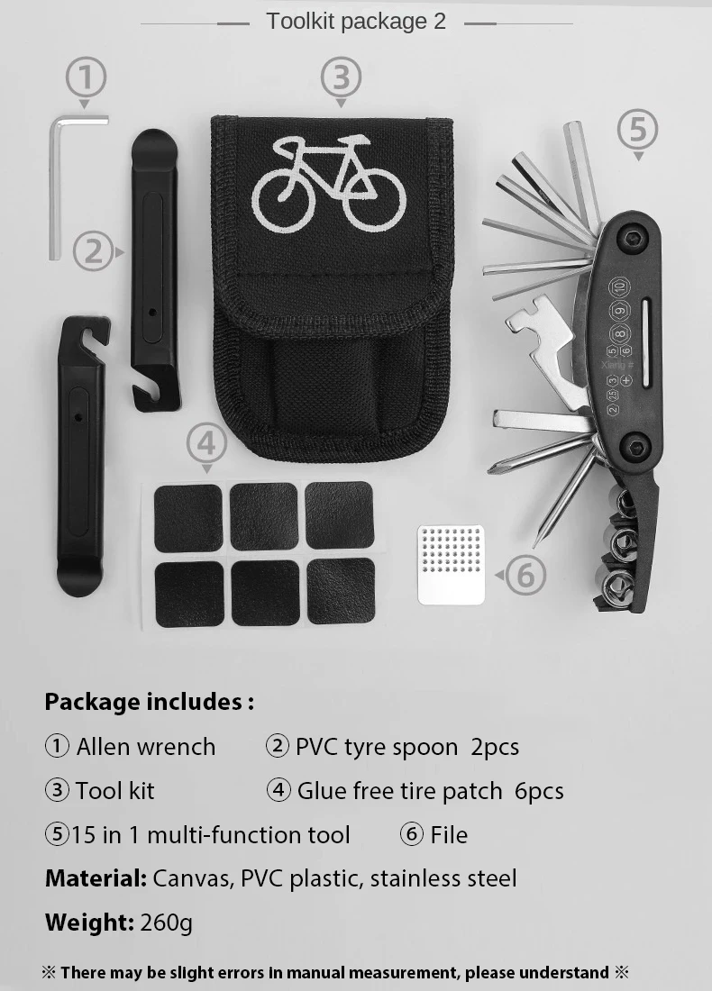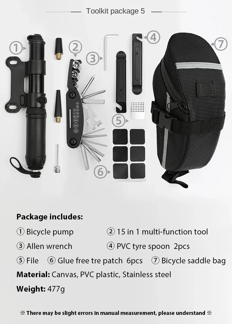 Portable Bicycle Repair Tool Kit with Pump and Accessories
