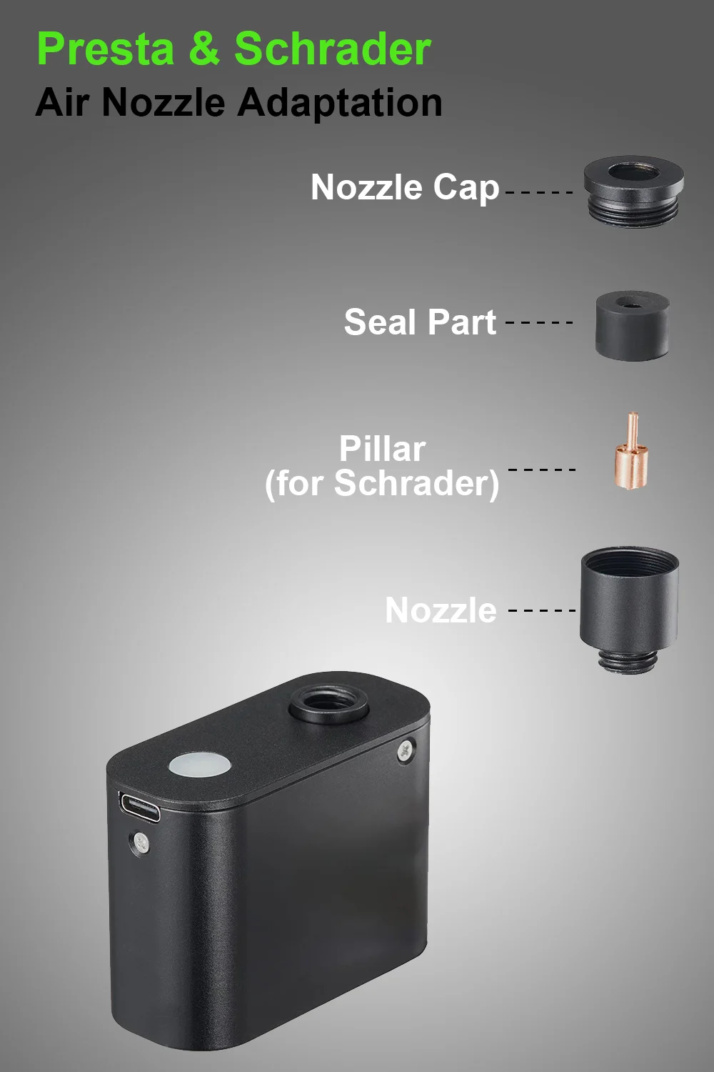 • Rechargeable : No need to constantly replace batteries. Simply recharge the pump using a Type-C cable.