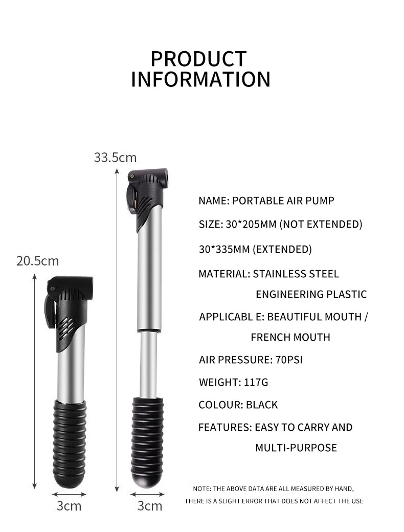 Portable Mini Bicycle Pump for Bikes and Sports Equipment