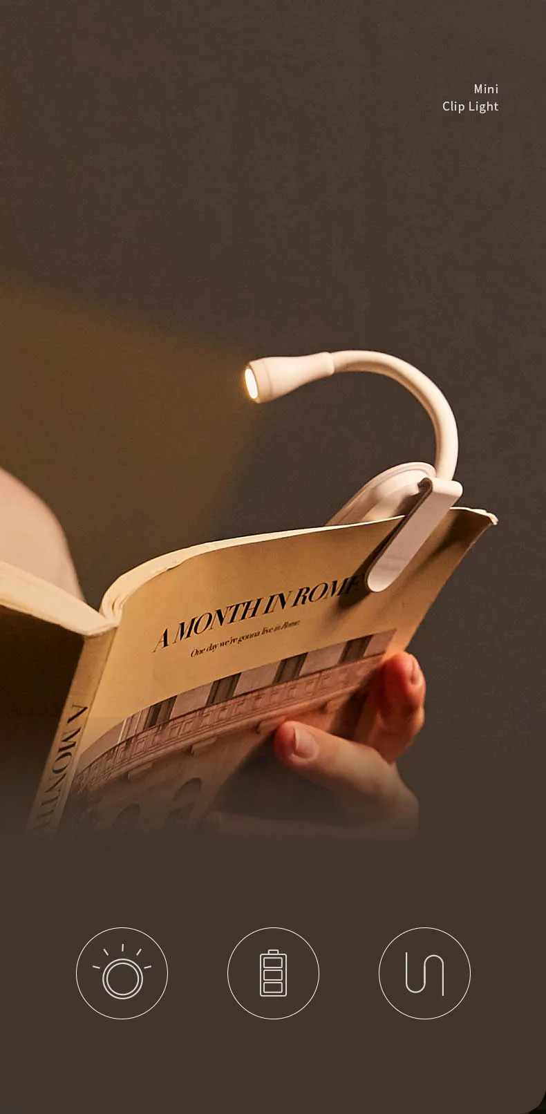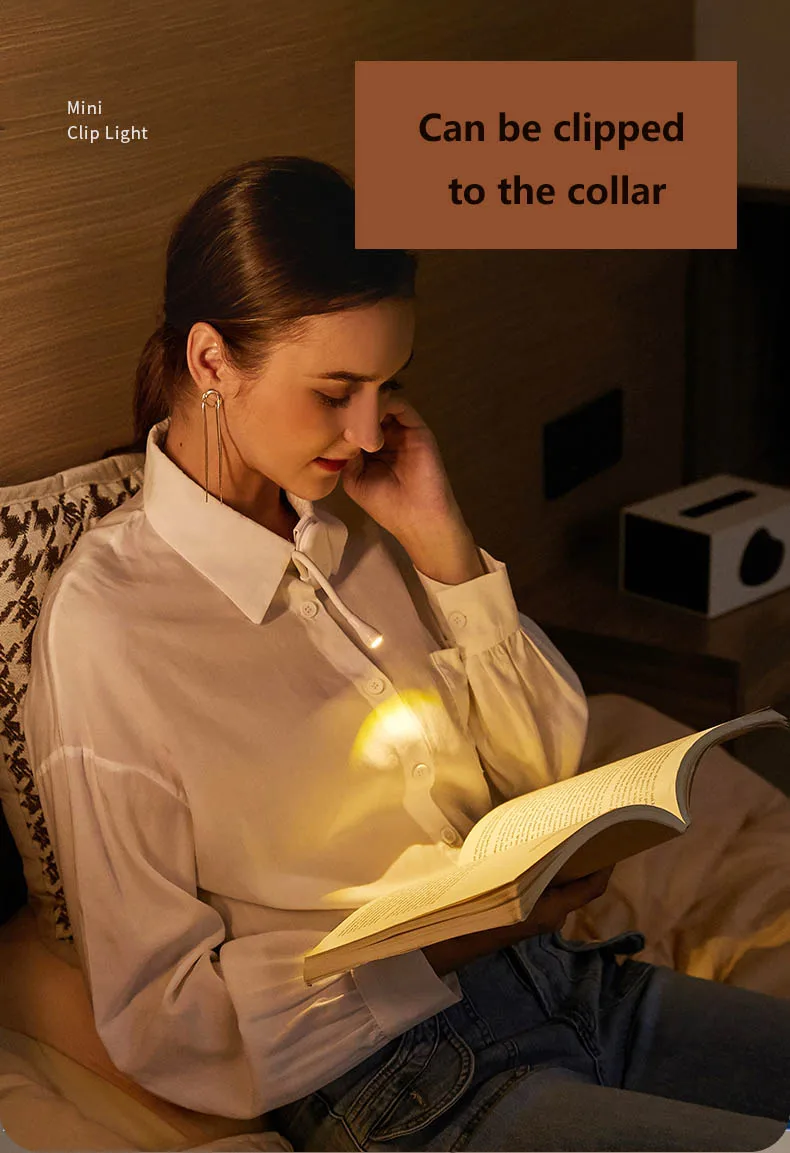 Portable Mini Book Light, USB Charging, Dimmable LED for Bedroom, Camping, and More