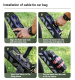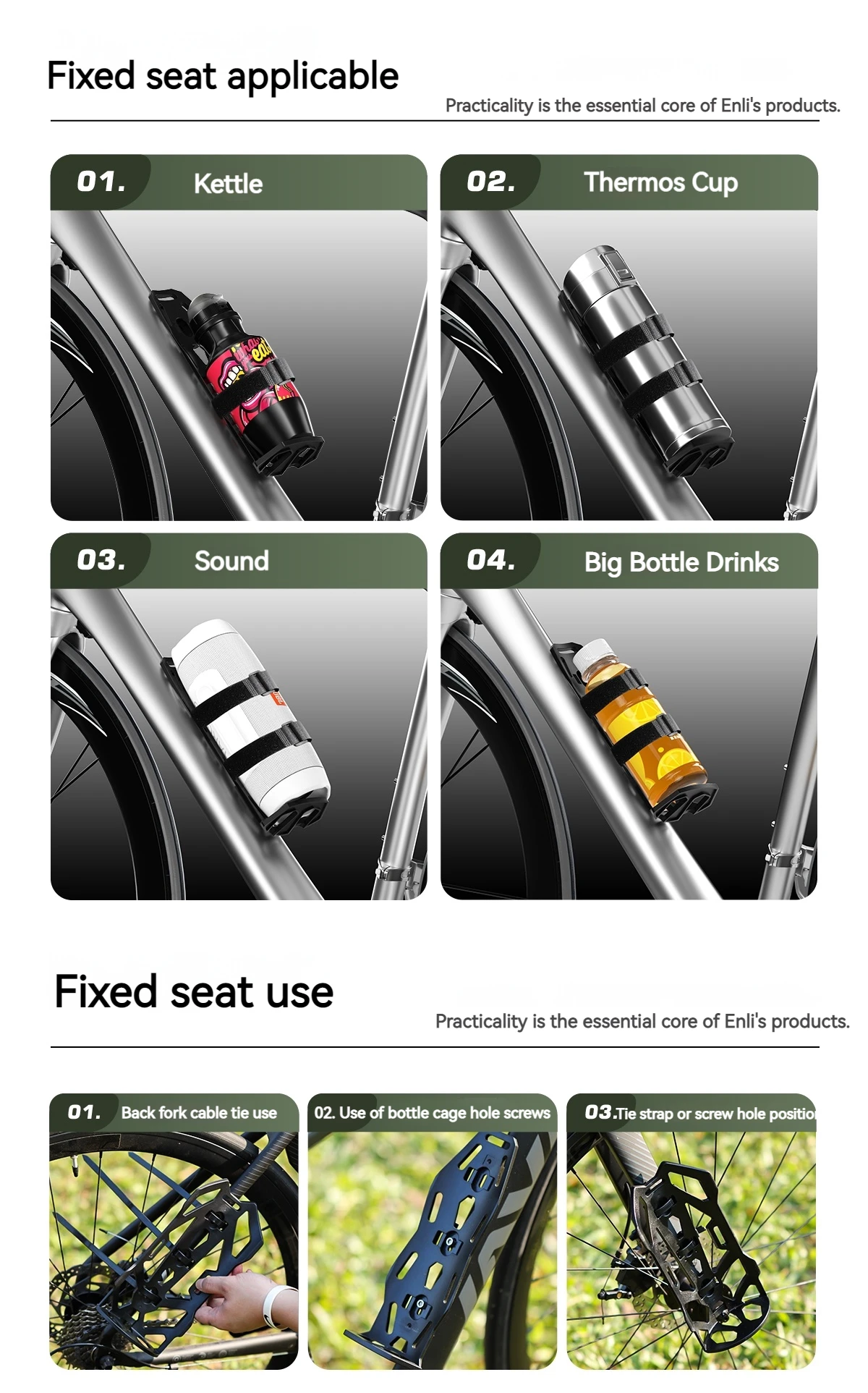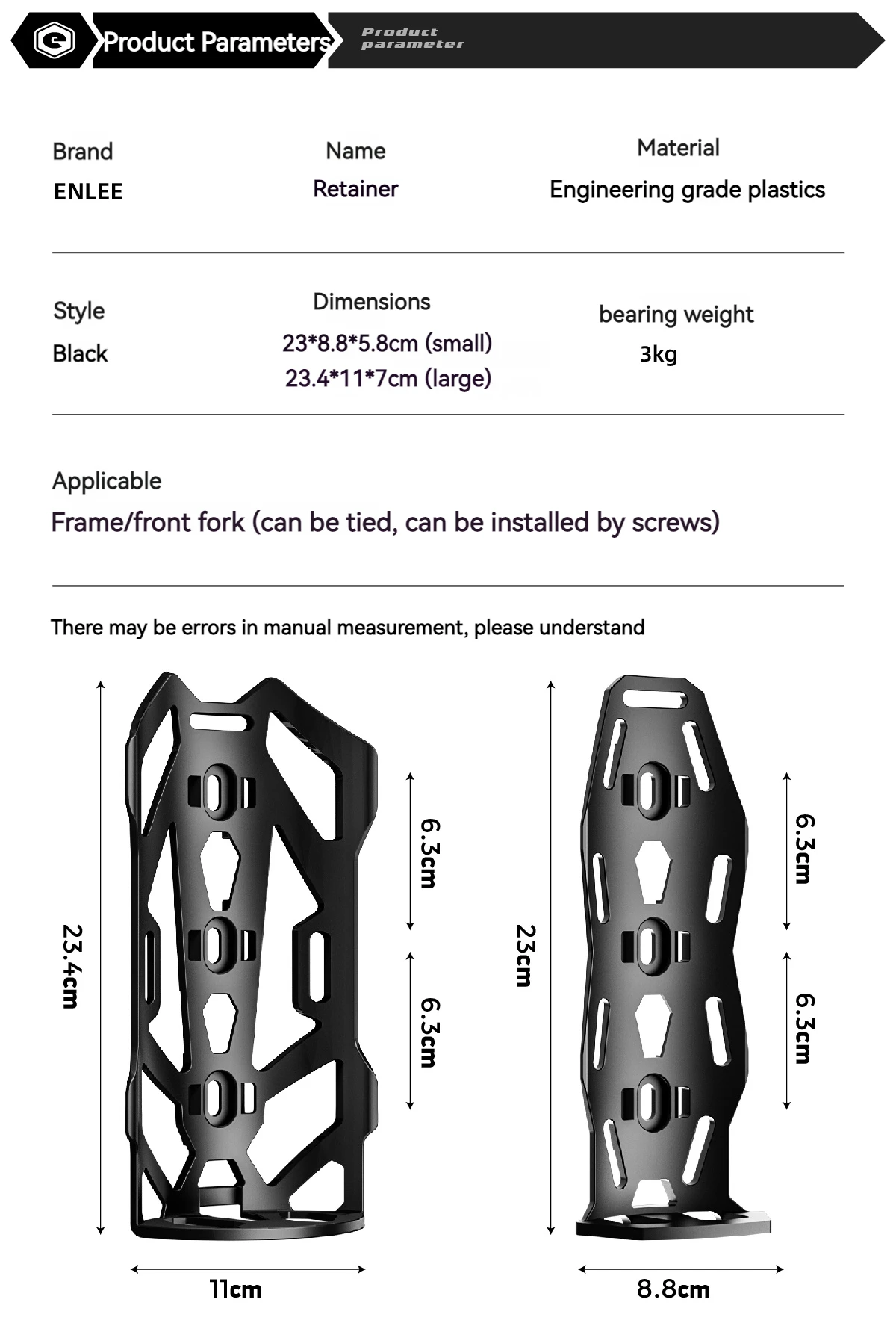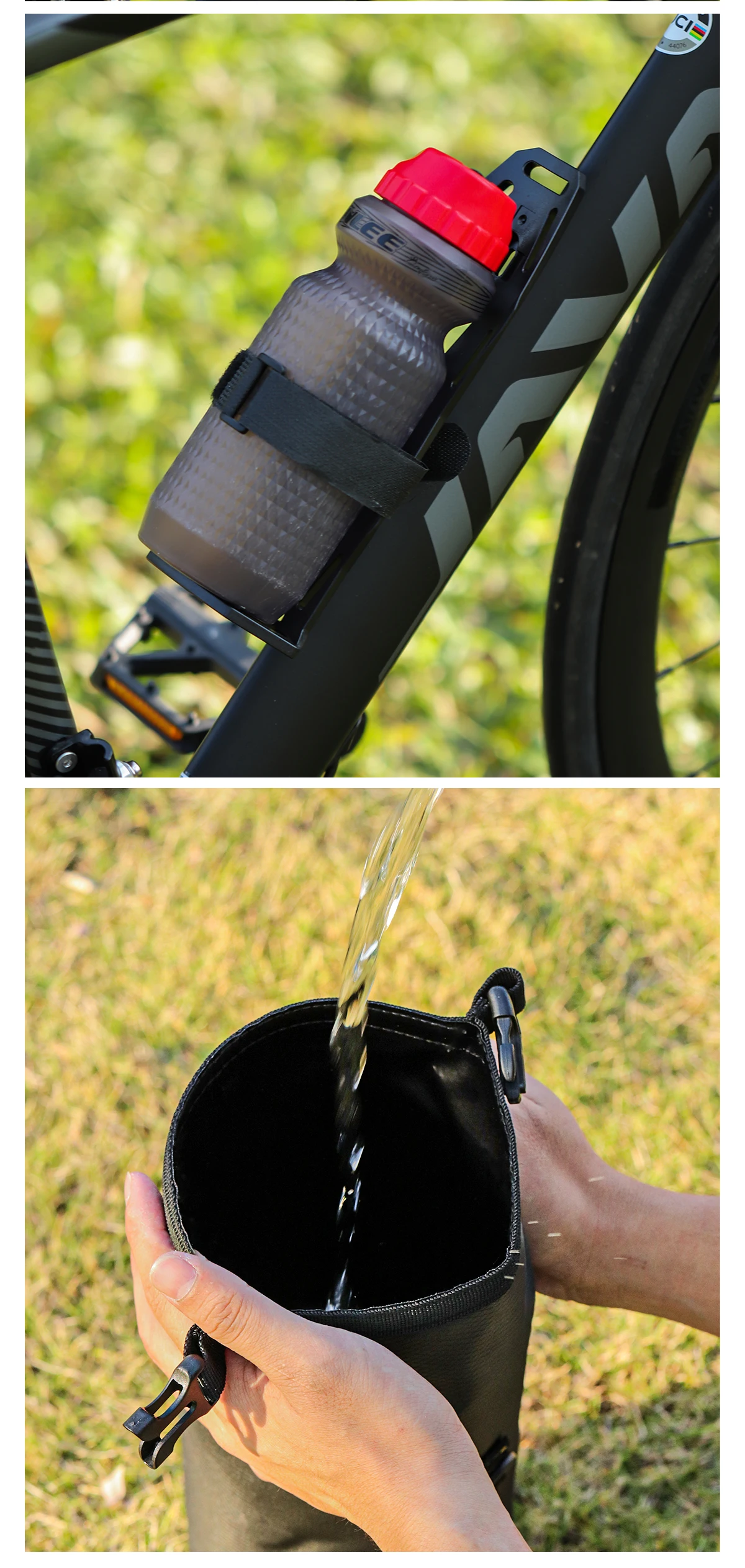 On the other hand, made from material that can hold a bag, it can also be used separately to carry other items such as water bottles, bags or camping mats. Items can be attached to the cage by means of two built-in straps. These straps have a very durable YKK buckle for easy one-handed operation. The basket can be screwed onto a fork (if appropriate) or a bottle holder on a bicycle frame.