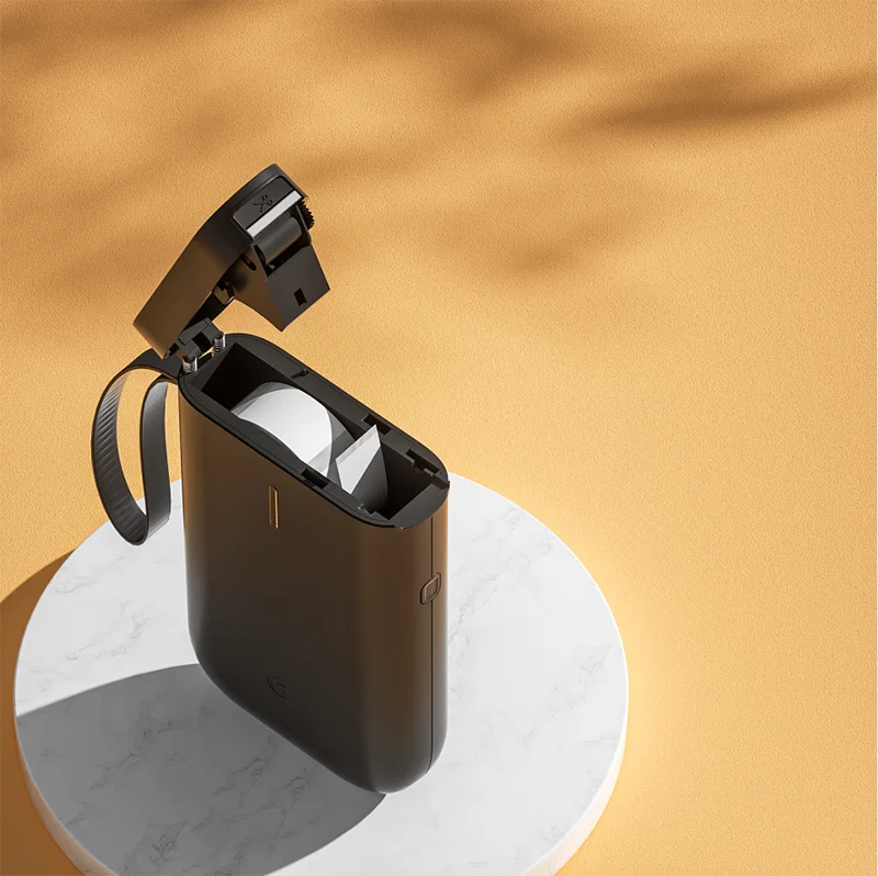 Wireless mini label maker can print within 10-meter away from the smartphone connected by Bluetooth.