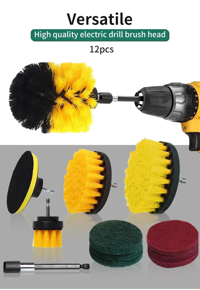 • 12pcs Electric Drill Brush Head :Comes with 12 different brush heads for versatile cleaning needs.