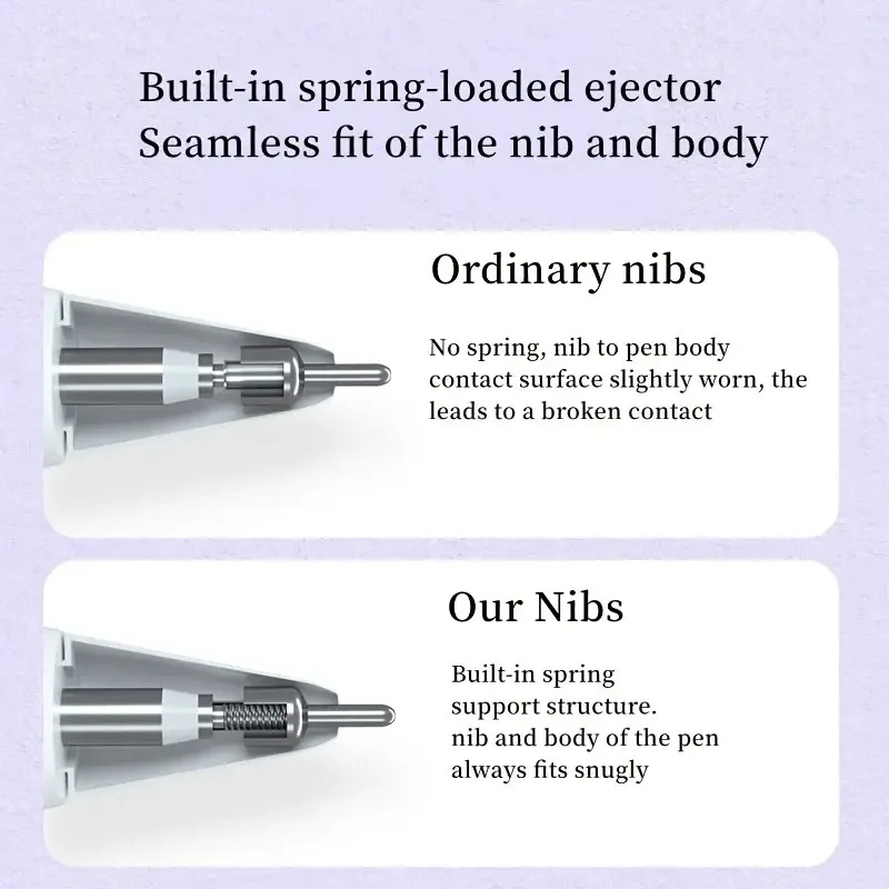 4. Extended spring-loaded nib for precise pen placement: titanium alloy wear-resistant metal. Built-in spring effectively protects the pen tip; nickel-plated alloy has high electrical conductivity and improves the sensitivity of the pen tip.