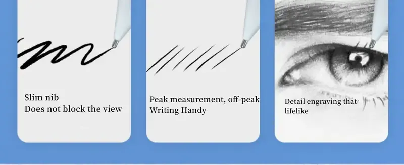 1. Fine nib upgrade: precise fine line control to replace the nib, increased length of the metal nib, good for tilt drawing and sketching, high strength covering material, improved welding procedure so that it is not easy to break due to falling.
