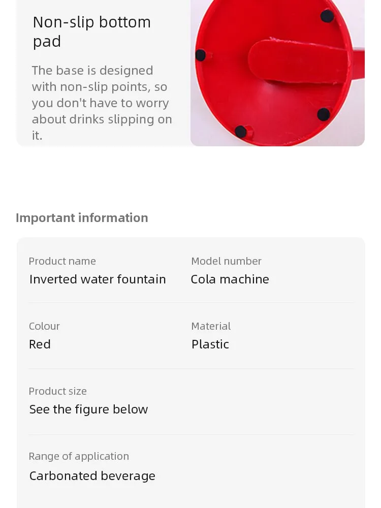 2. inverted carbonated drinks will feel better than other juice drinks or water because there is gas, so there is no need to squeeze the bottle, but other drinks may need to squeeze 3. open and not open feel different! It’s a sealed device! No gas, it is difficult to water! Please note: If there is a leak, please re-install the white pad or change the face of the bottle, press! It will not leak again! If the leakage of water, gas, will affect your feeling of use! No need to be nervous and upset! (The white pad is to prevent water and gas leaks).
