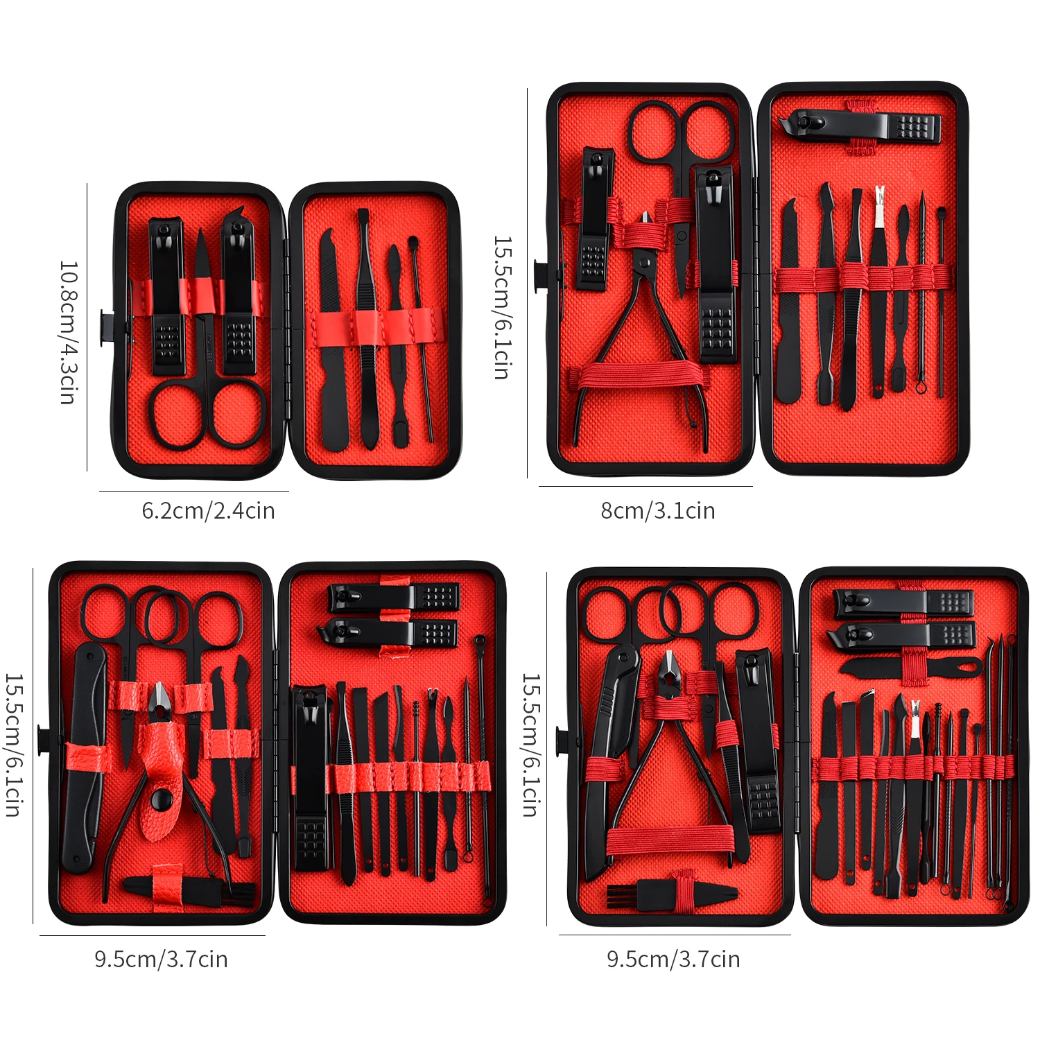Professional Black-Red Manicure and Pedicure Set with Travel Case