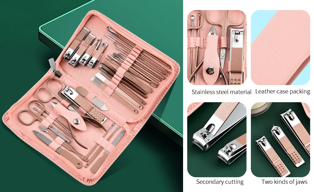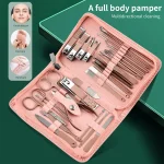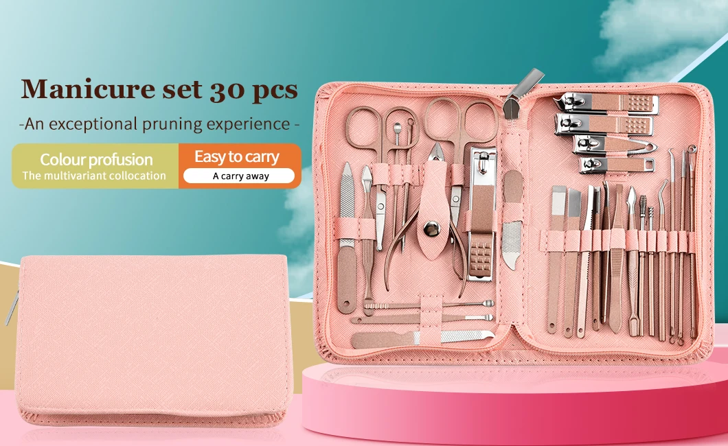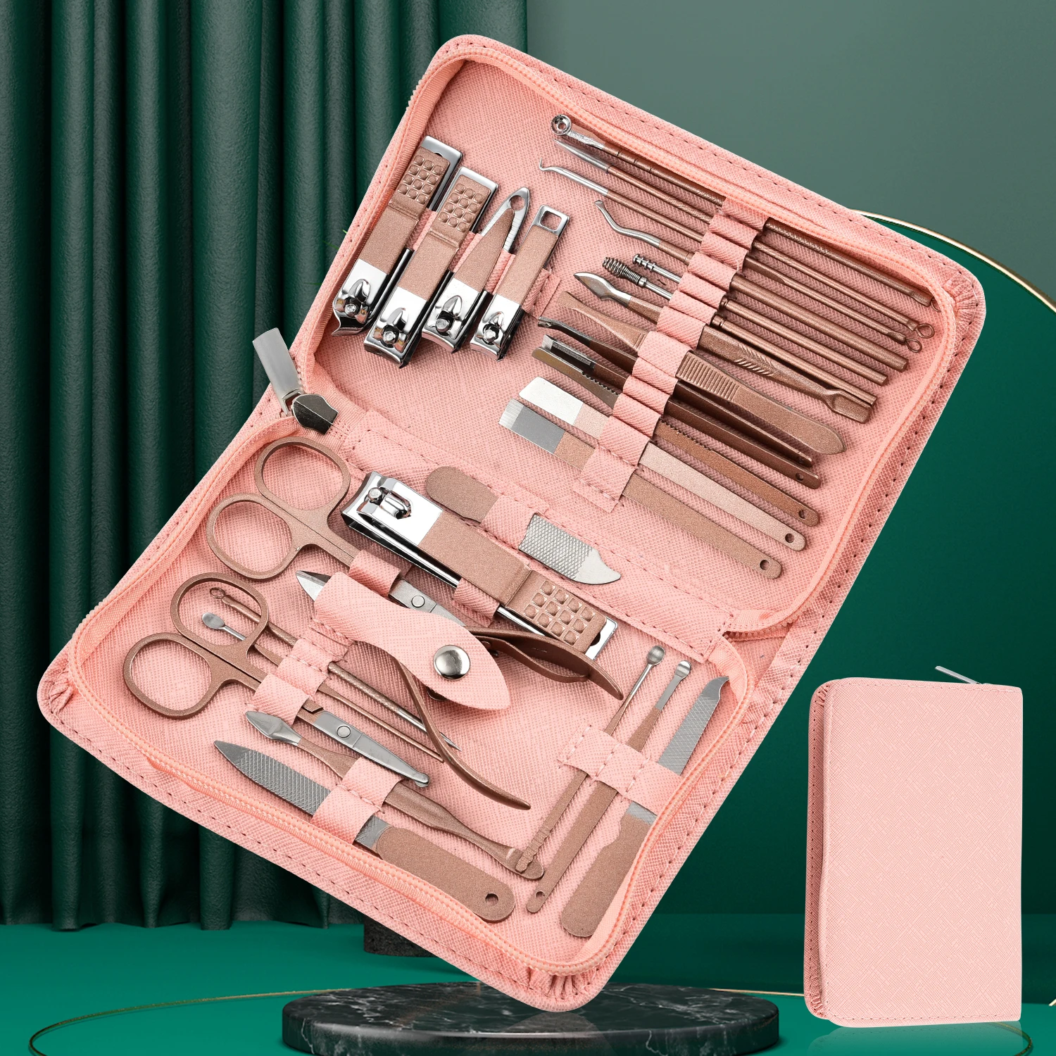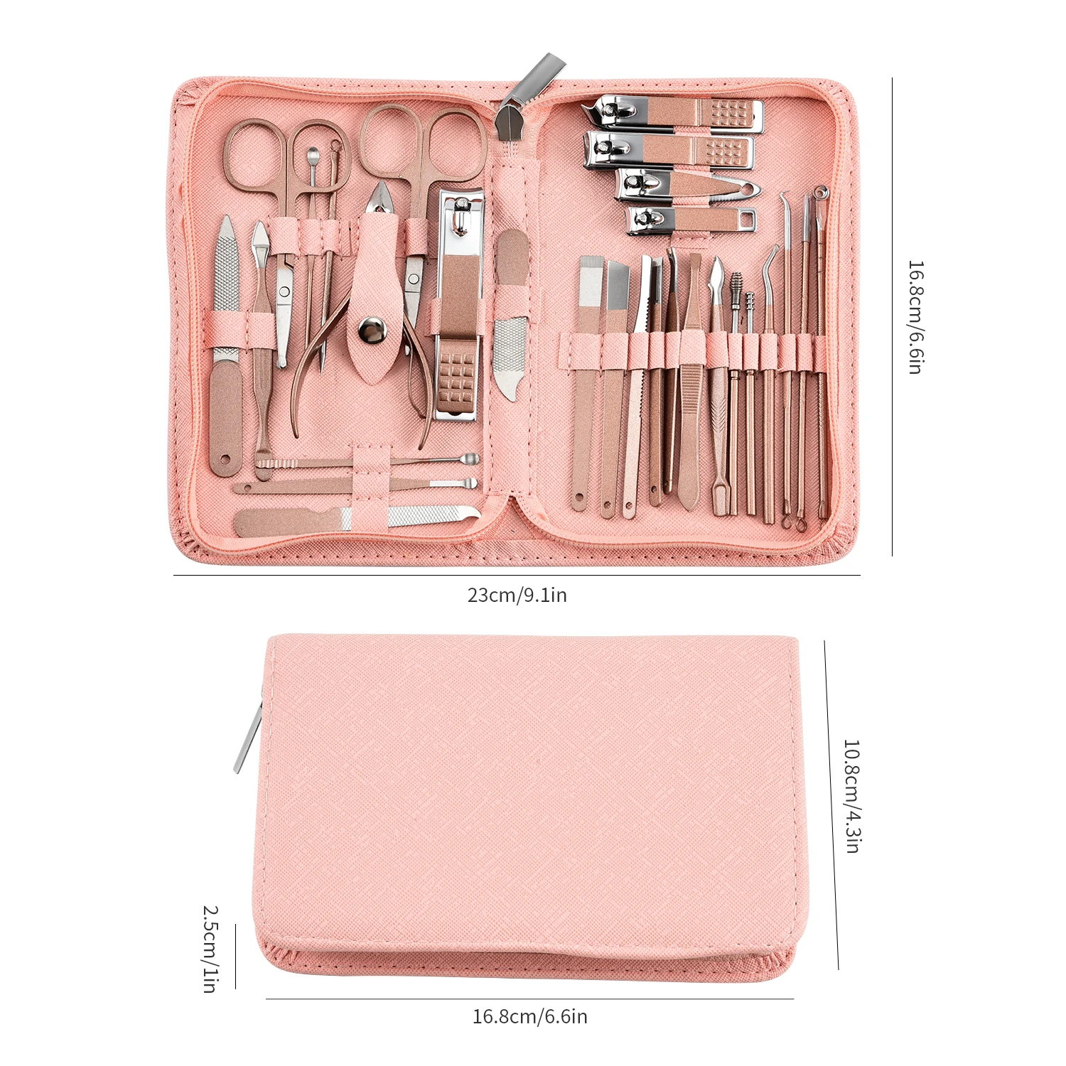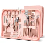 Professional Manicure Set with Stainless Steel Tools and Pink Case