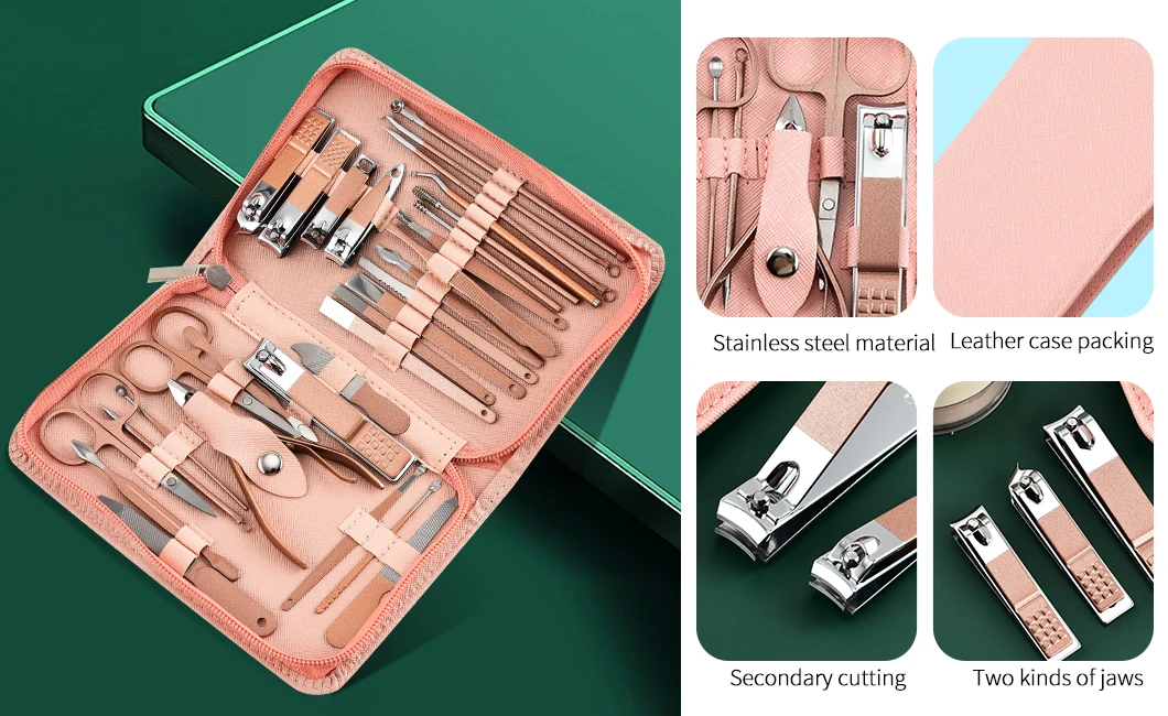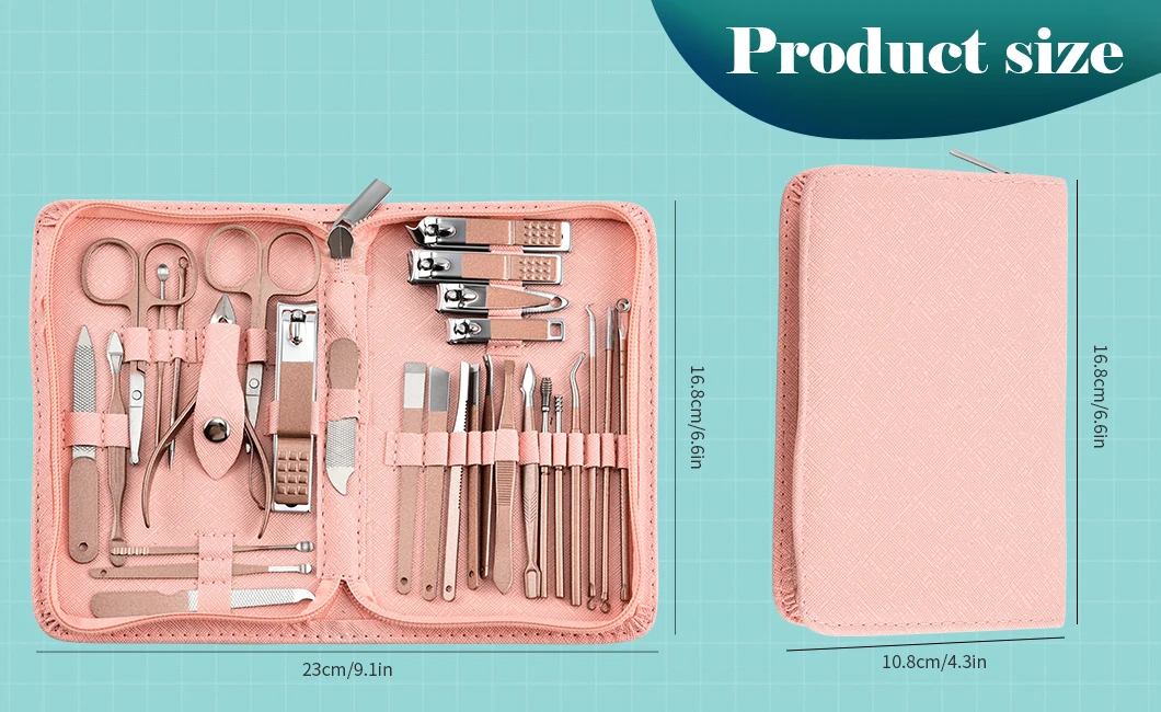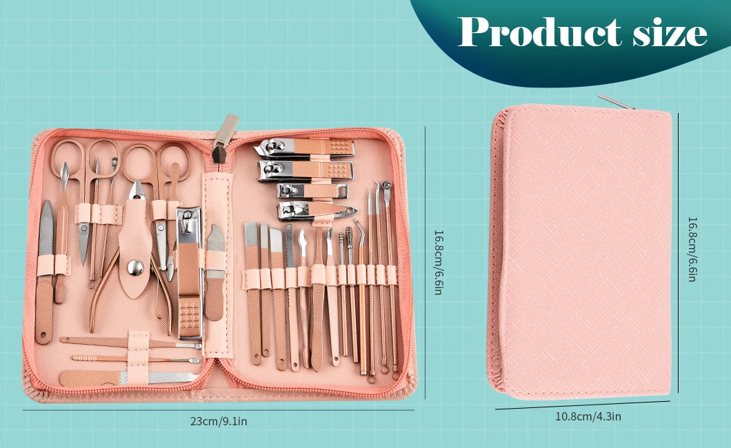 Be the first to review “Professional Manicure Set with Nail Clippers and Pink Case” Cancel reply
