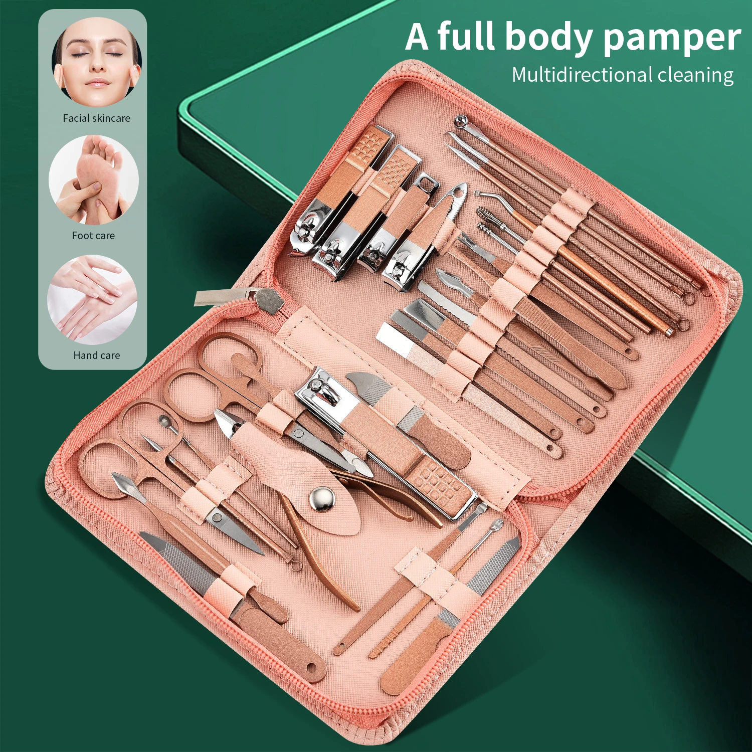 Brown Nail Kit Stainless Steel Clipper Travel Set with Case