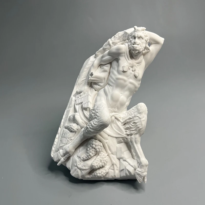 Proud Pan, Ancient Greek Mythology Sculpture in Retro Roman Plaster
