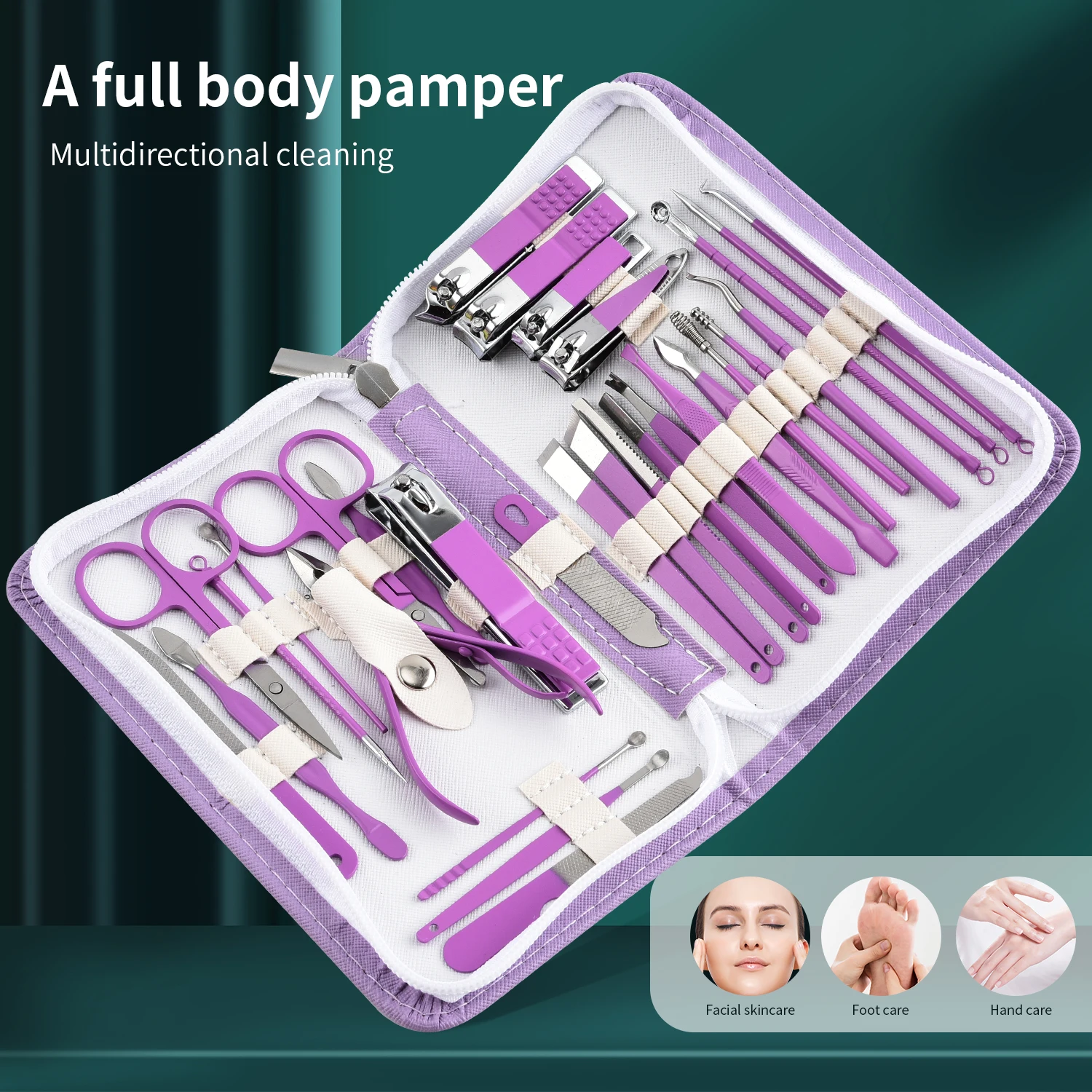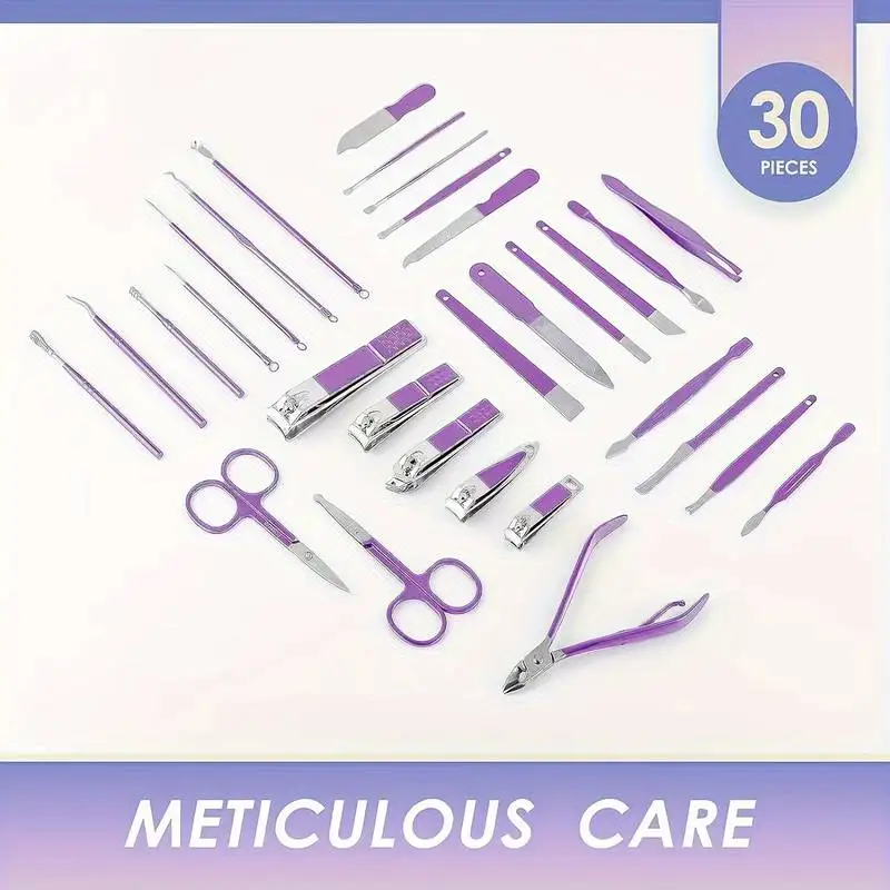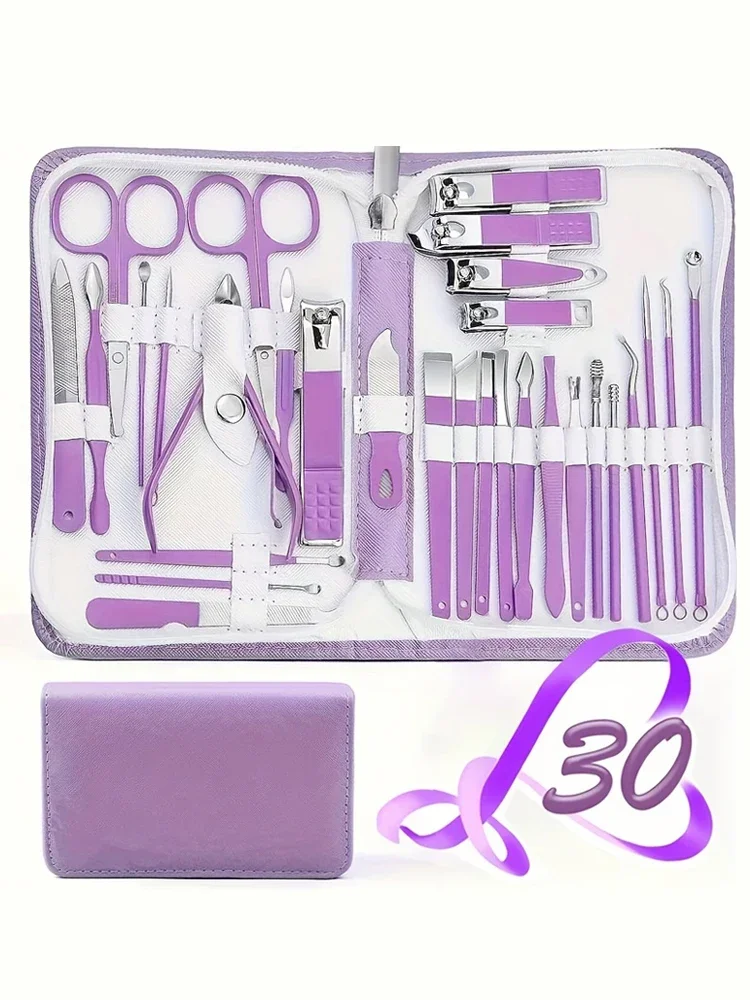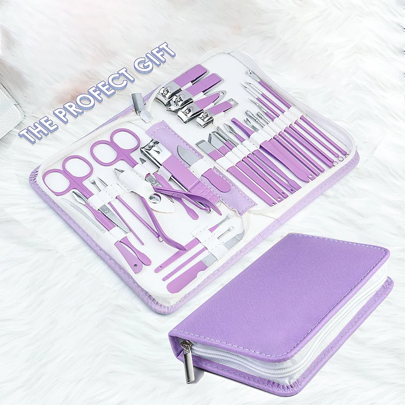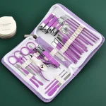 Purple Manicure Set Professional Travel Kit with Nail Care Tools