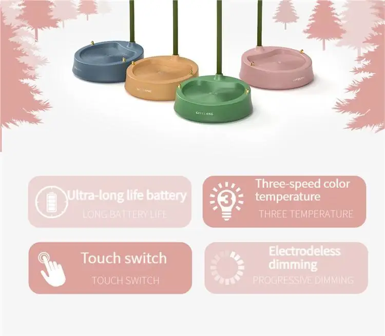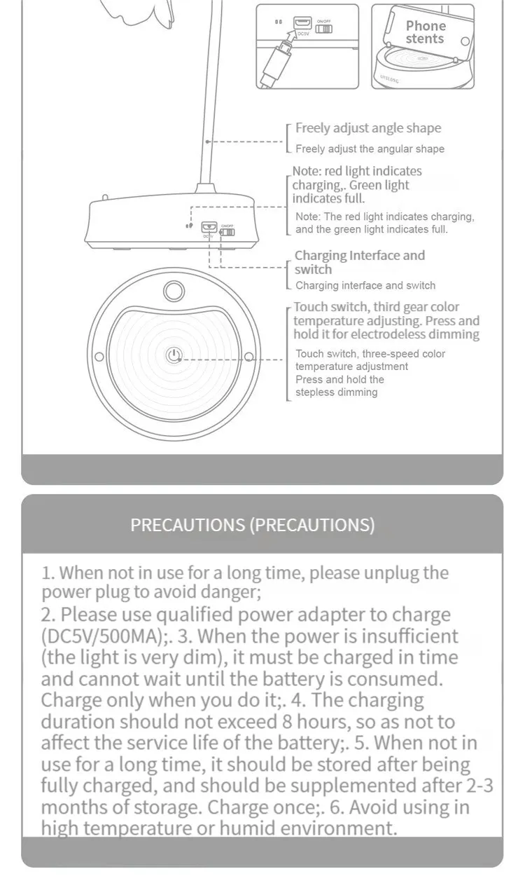 2. Three color dimming: Touch the button to adjust the temperature of three colors, white light – natural light –